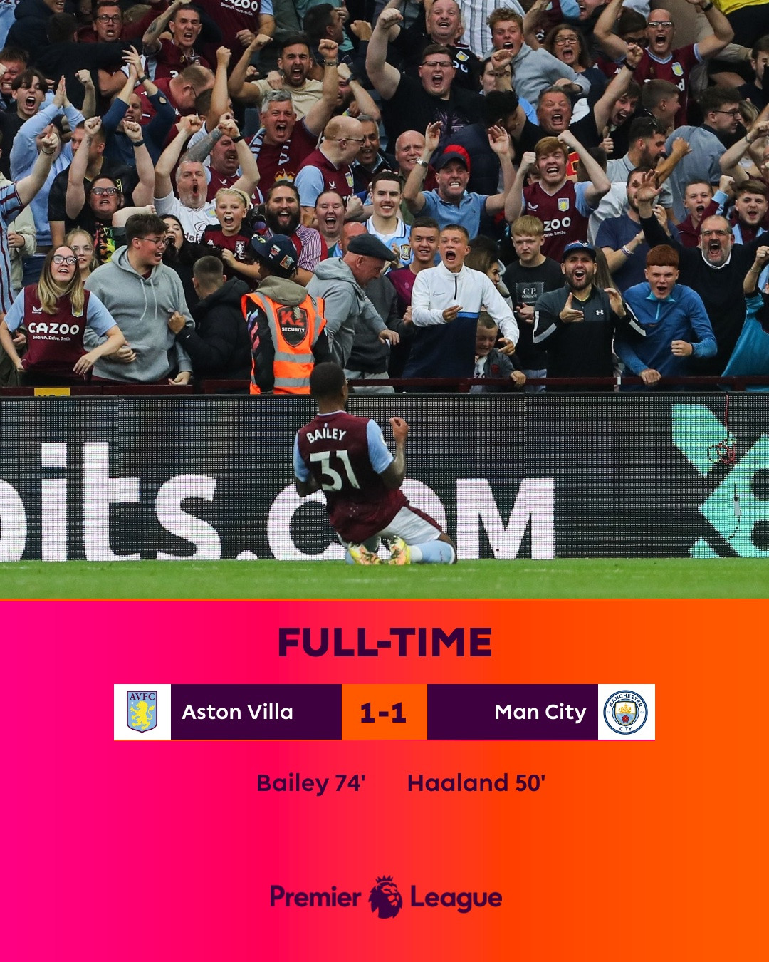 Bàn thắng (1-1): Đang chơi lép vế, Aston Villa bất ngờ tìm được bàn gỡ. Ramsey lao lên bên góc trái rồi trả ngược thuận lợi để Bailey kết thúc căng bằng chân trái tung lưới Ederson.