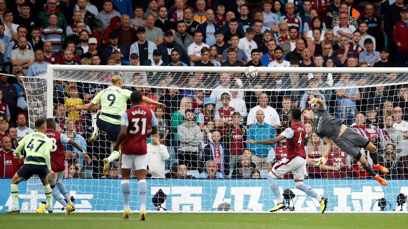 Haaland và De Bruyne liên tục bắn phá khung thành Aston Villa. Chỉ có may mắn mới giúp đội chủ nhà chưa để thua bàn thứ hai.