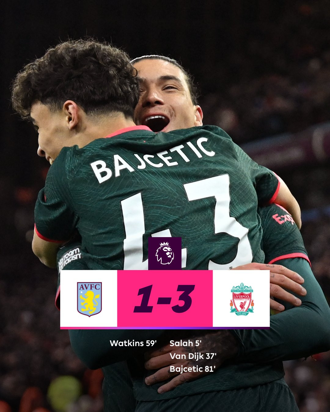Bàn thắng: Watkins 59' - Salah 5', Van Dijk 37', Bajcetic 81'