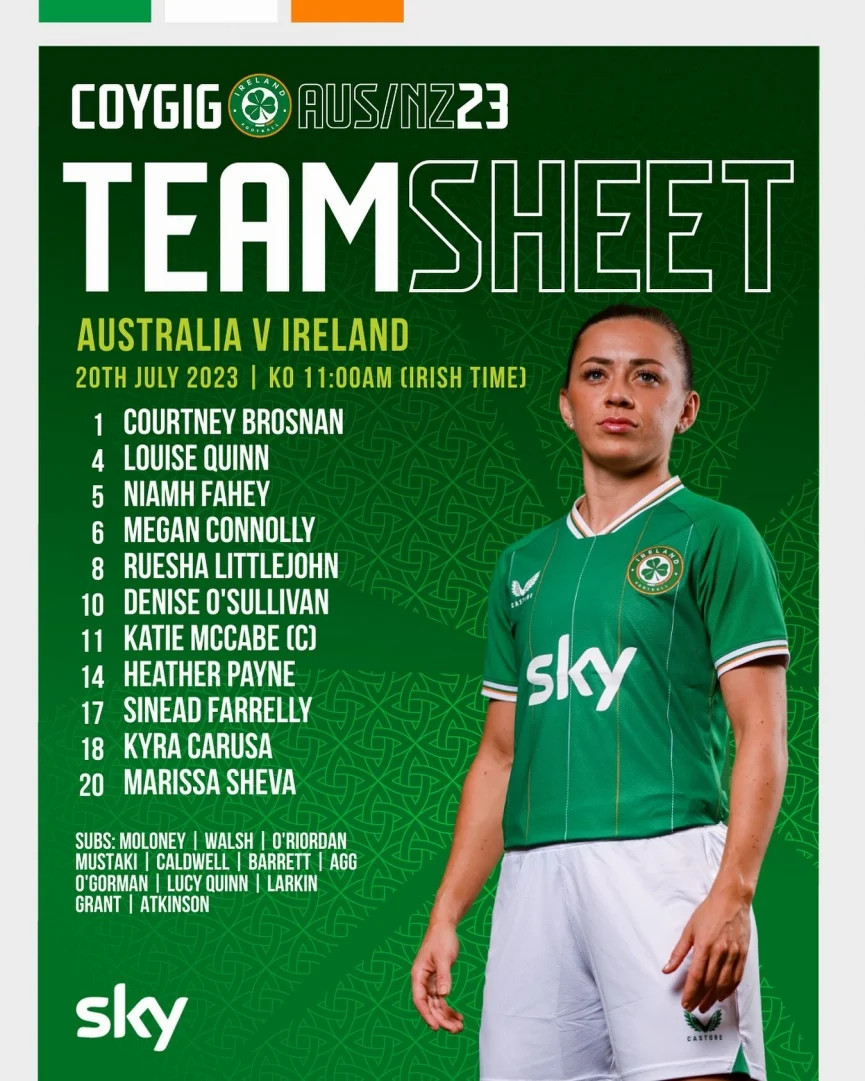 Đội hình xuất phát nữ Australia vs nữ Ireland