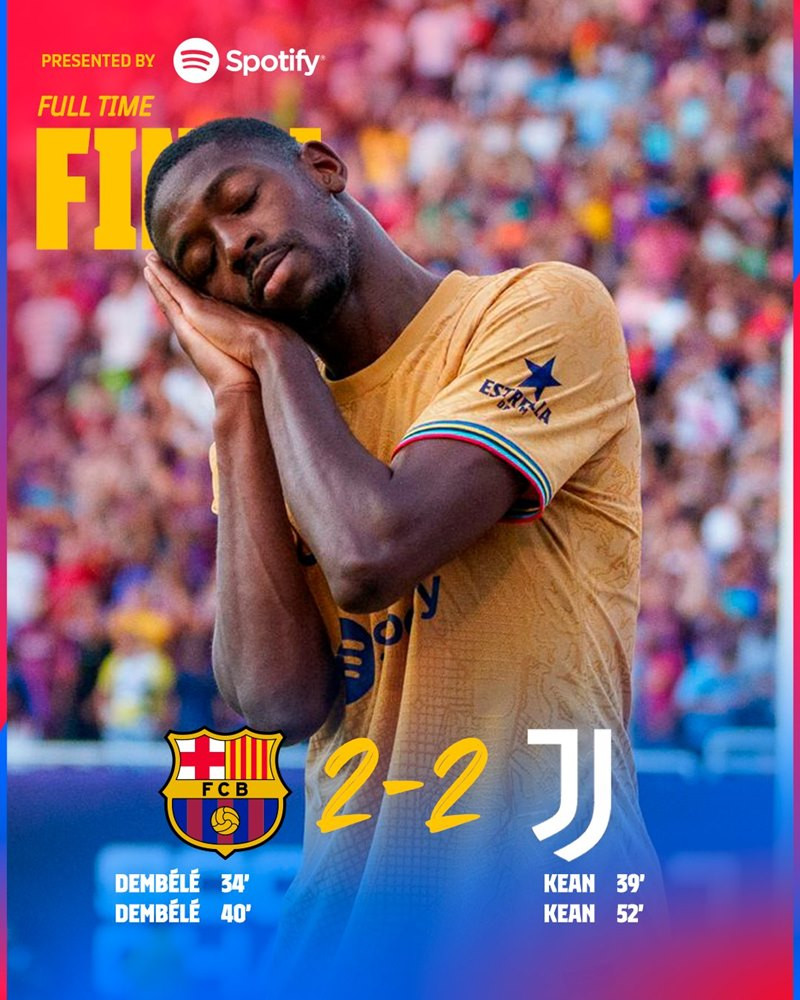 Hiệp một khép lại với tỷ số 2-1 tạm nghiêng về phía Barca, nhờ cú đúp tuyệt phẩm của Dembele.