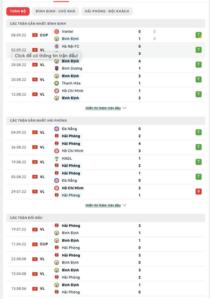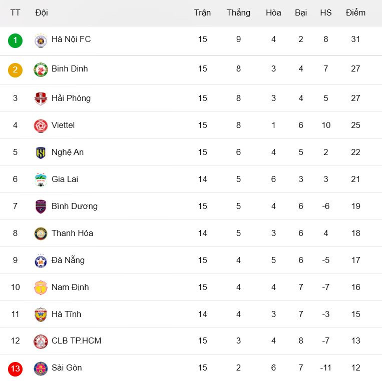 Trận đấu kết thúc với tỷ số hòa không bàn thắng. Bình Định và Hải Phòng tiếp tục ghìm chân nhau ở vị trí thứ 2 và 3.
