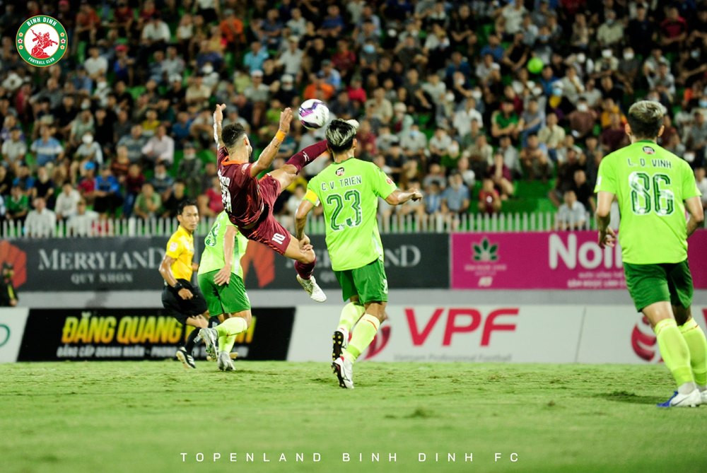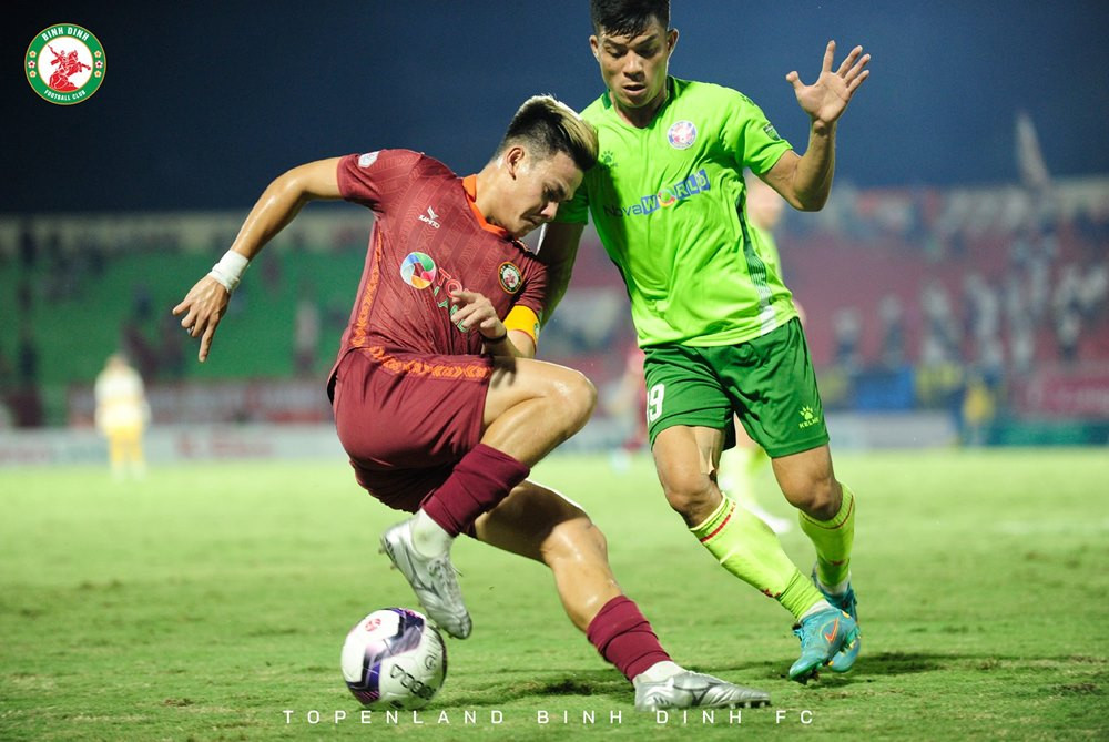 BÀN THẮNG! Bình Định 2-0 Sài Gòn (Hendrio): Đón quả tạt từ cánh trái vào của đồng đội, Hendrio bình tĩnh loại bỏ hậu vệ Sài Gòn rồi đặt lòng về góc xa nâng tỉ số lên 2-0 cho Bình Định.