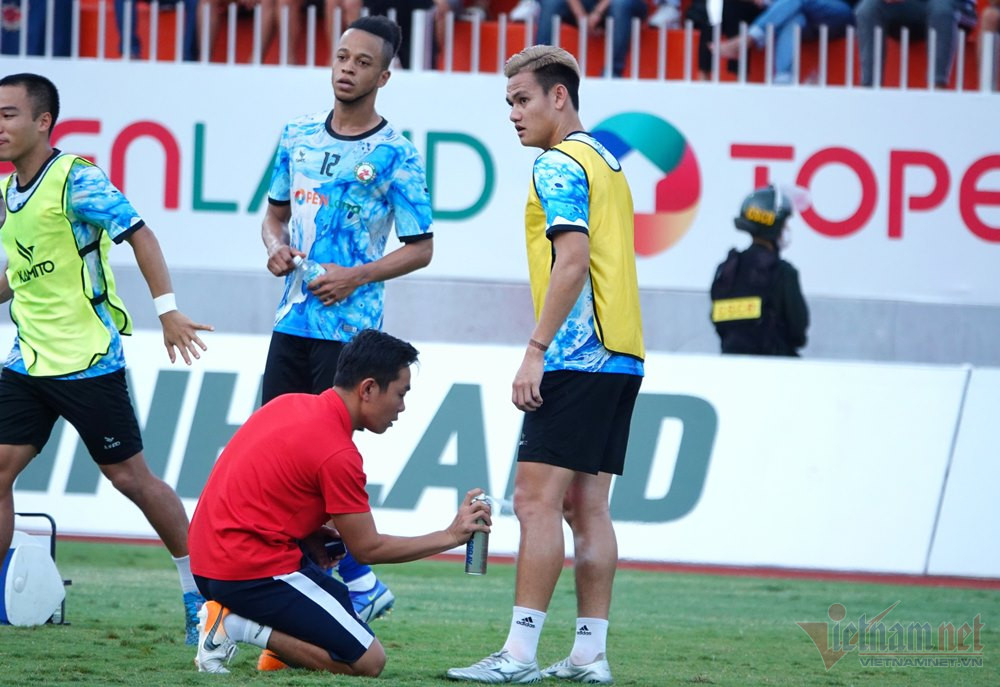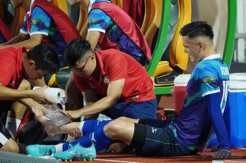 Chủ nhà sớm phải thay người bất đắc dĩ khi trung vệ Schmidt bị đau và không thể tiếp tục thi đấu, anh rời sân để nhường chỗ cho Ngọc Bảo.