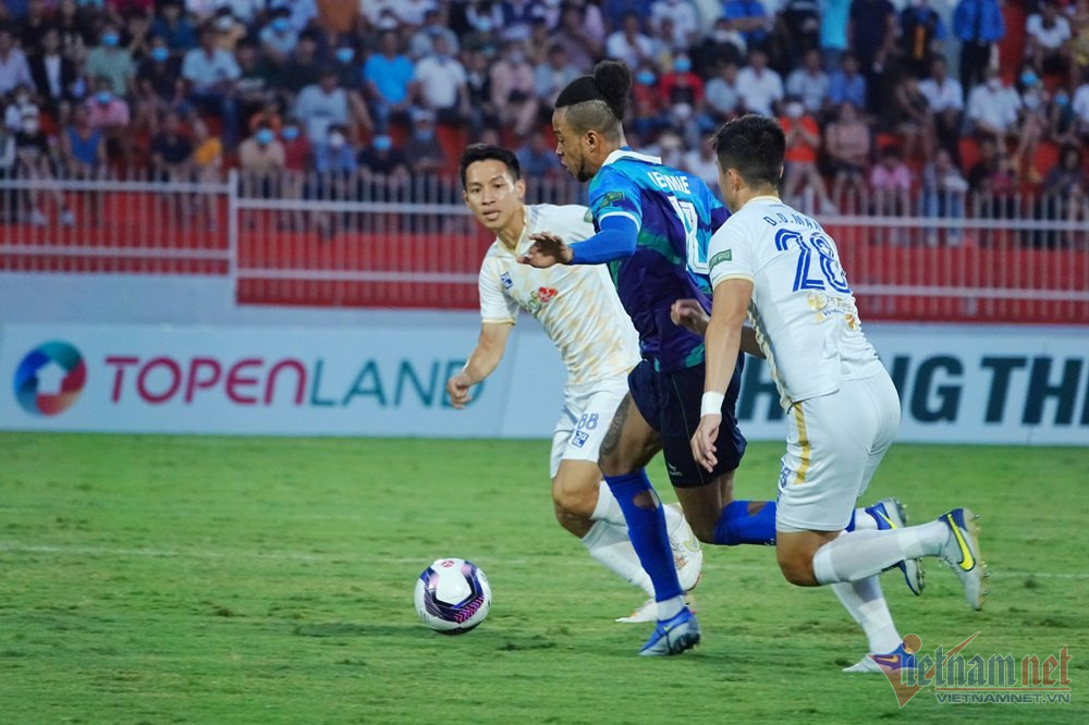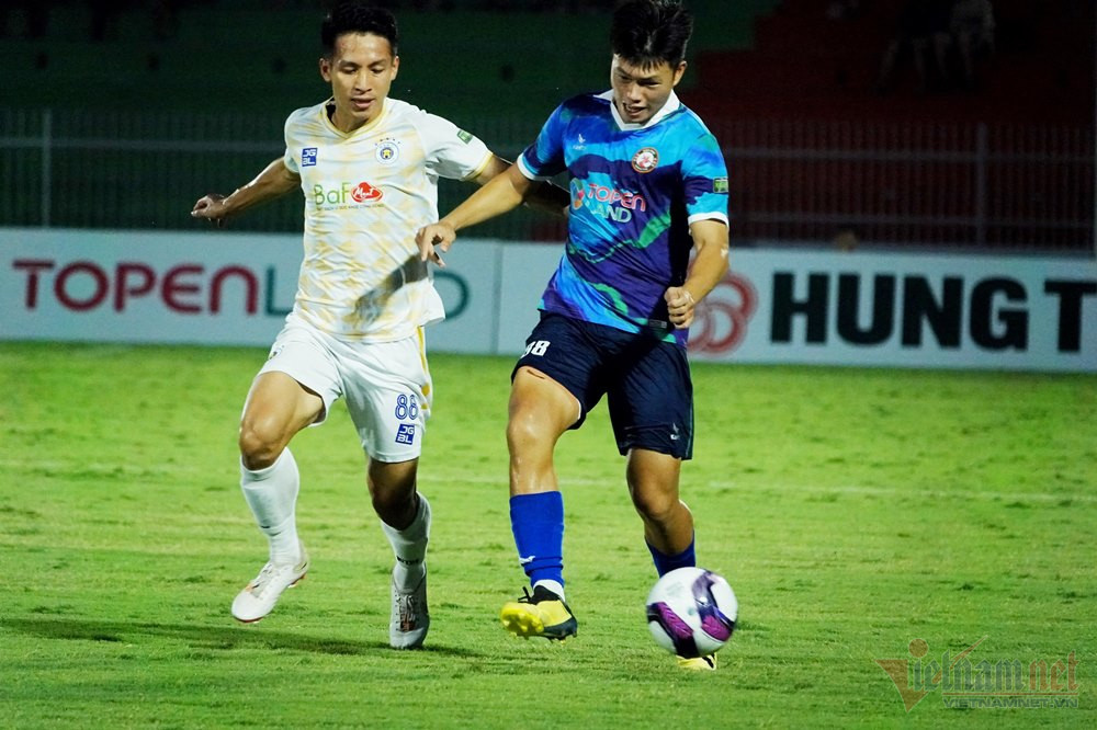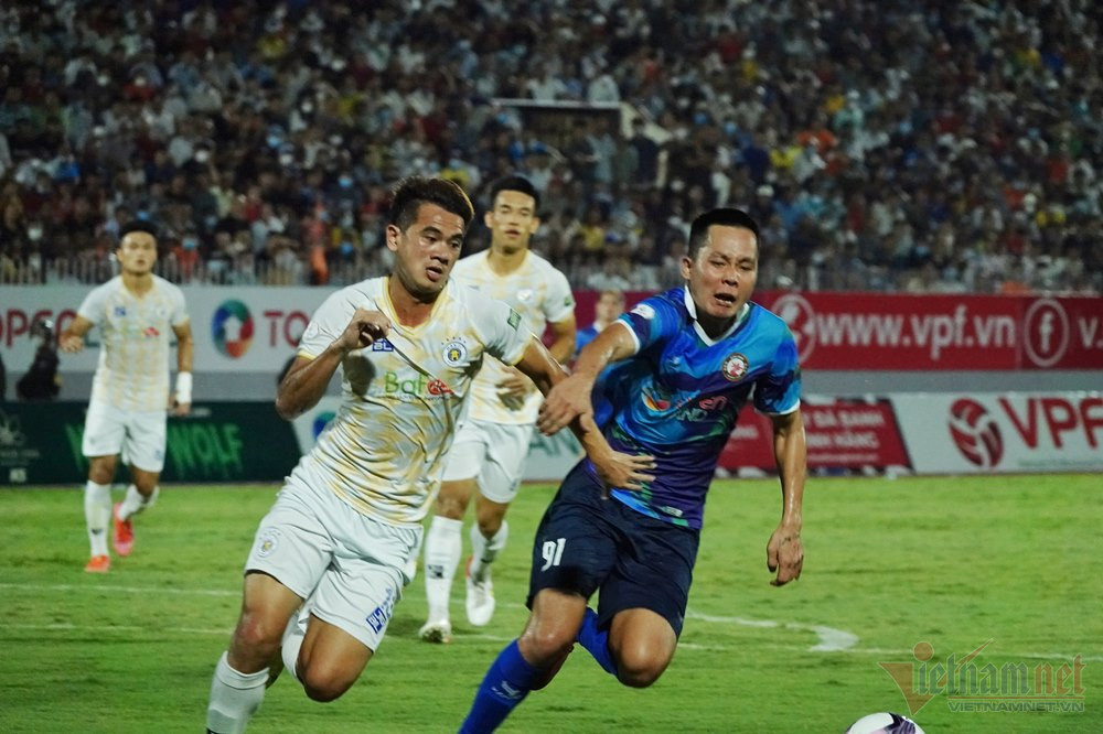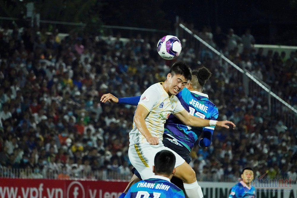 Bùi Hoàng Việt Anh đánh đầu tung lưới Bình Định lần thứ hai, song trọng tài xác định đã có lỗi của cầu thủ Hà Nội FC.