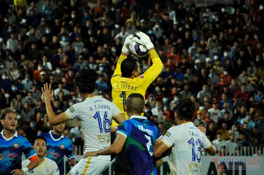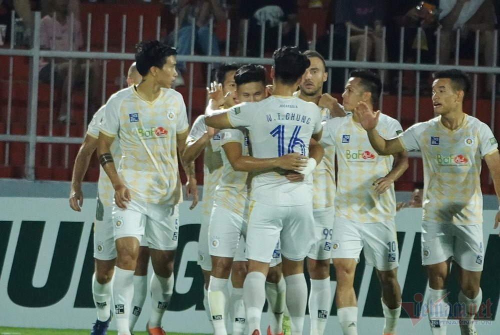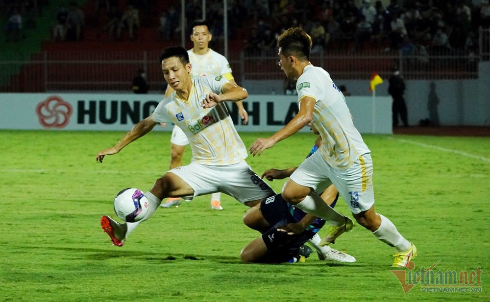 Các học trò của HLV Nguyễn Đức Thắng liên tục gây sức ép về phía khung thành của Hà Nội, hàng phòng ngự của đội khách vì vậy mà phải làm việc vất vả hơn.