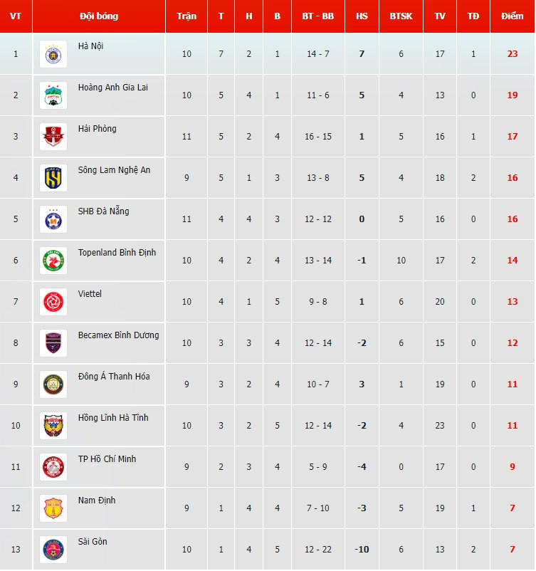 Trận đấu kết thúc với chiến thắng tối thiểu 1-0 dành cho Hà Nội trước chủ nhà Bình Định. Kết quả này giúp đội bóng Thủ đô củng cố ngôi đầu bảng V-League với 23 điểm.