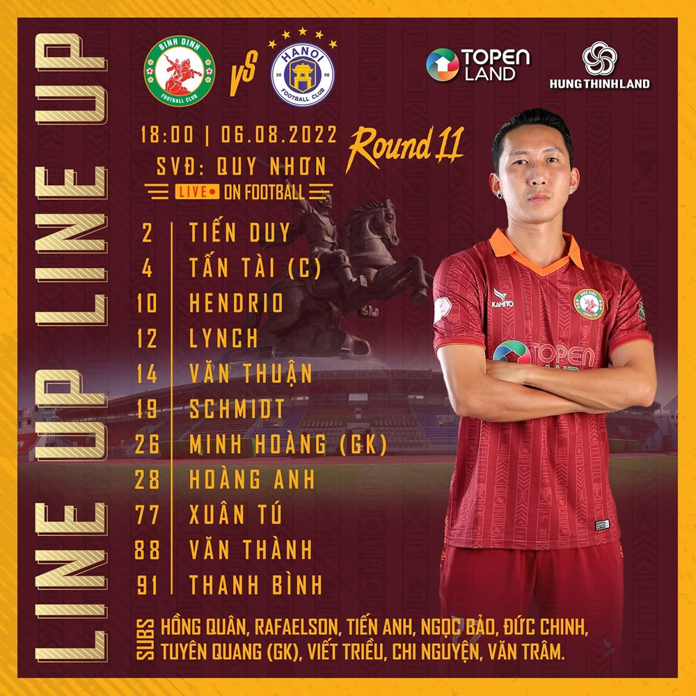 Topenland Bình Định: Minh Hoàng, Tấn Tài, Tiến Duy, Schmidt (Ngọc Bảo 17'), Văn Thành (Viết Triều 72'), Thanh Bình (Rafaelson 56'), Hendrio, Văn Thuận, Hoàng Anh, Xuân Tú (Đức Chinh 72'), Jermie Lynch.