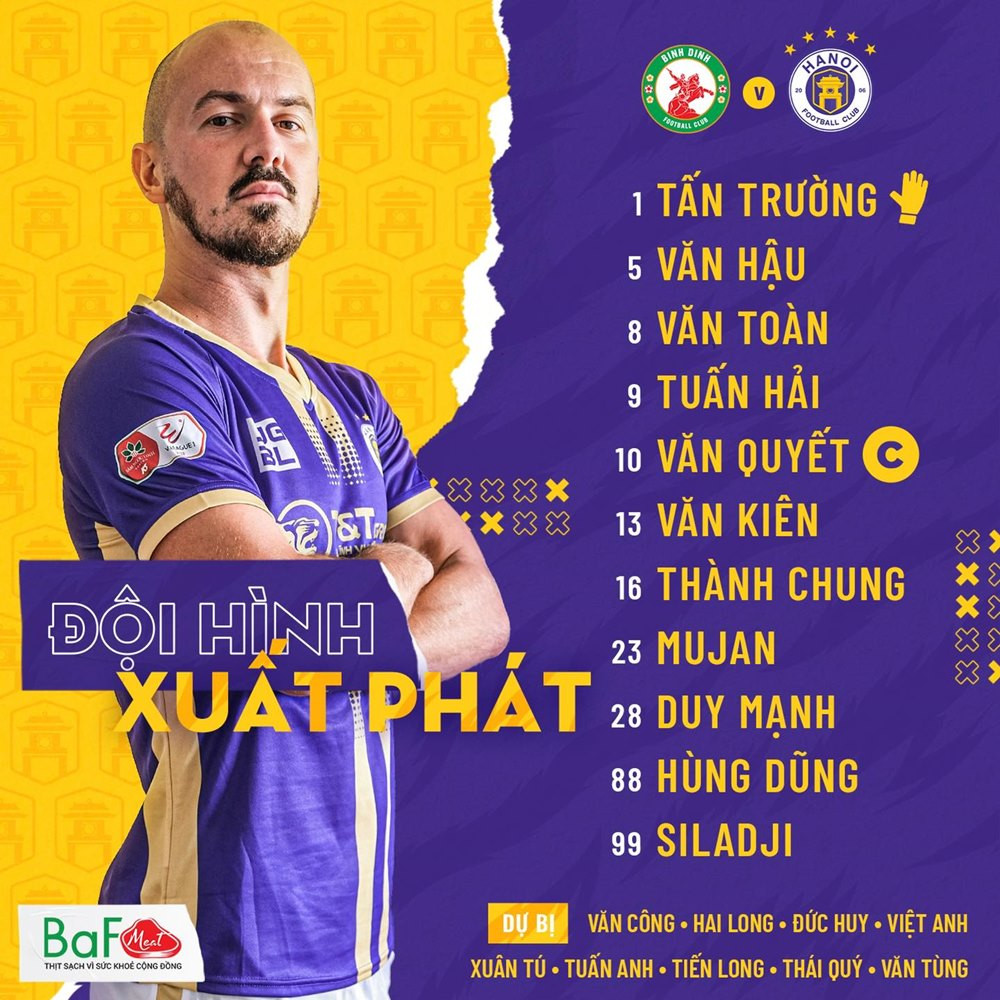 Hà Nội FC: Tấn Trường, Văn Hậu, Thành Chung, Văn Toàn, Văn Kiên, Duy Mạnh, Hùng Dũng, Siladi, Tuấn Hải, Văn Quyết, Tonci.