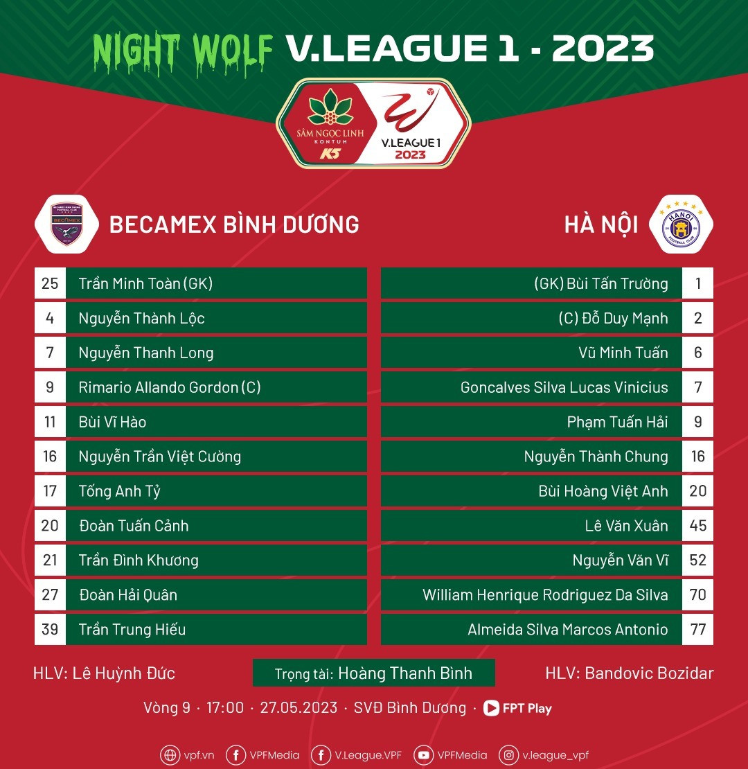 Đội hình xuất phát Bình Dương vs Hà Nội
