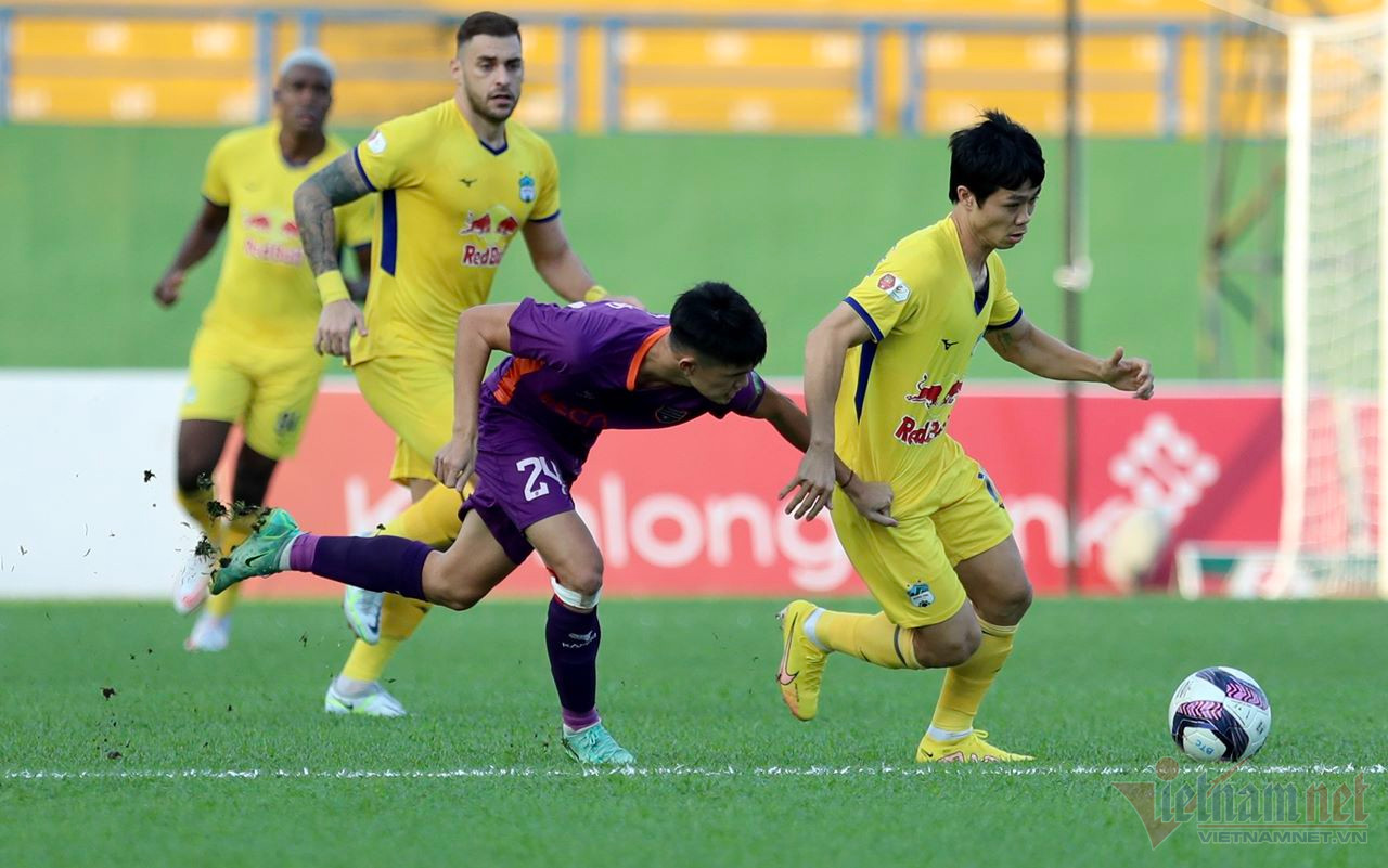 Công Phượng chuyền bóng dọn cỗ để Văn Toàn thoát xuống đối mặt với Sơn Hải. Tiền đạo quê Hải Dương bị ngã nhưng trọng tài Lê Vũ Linh cho rằng không có lỗi của thủ môn chủ nhà.