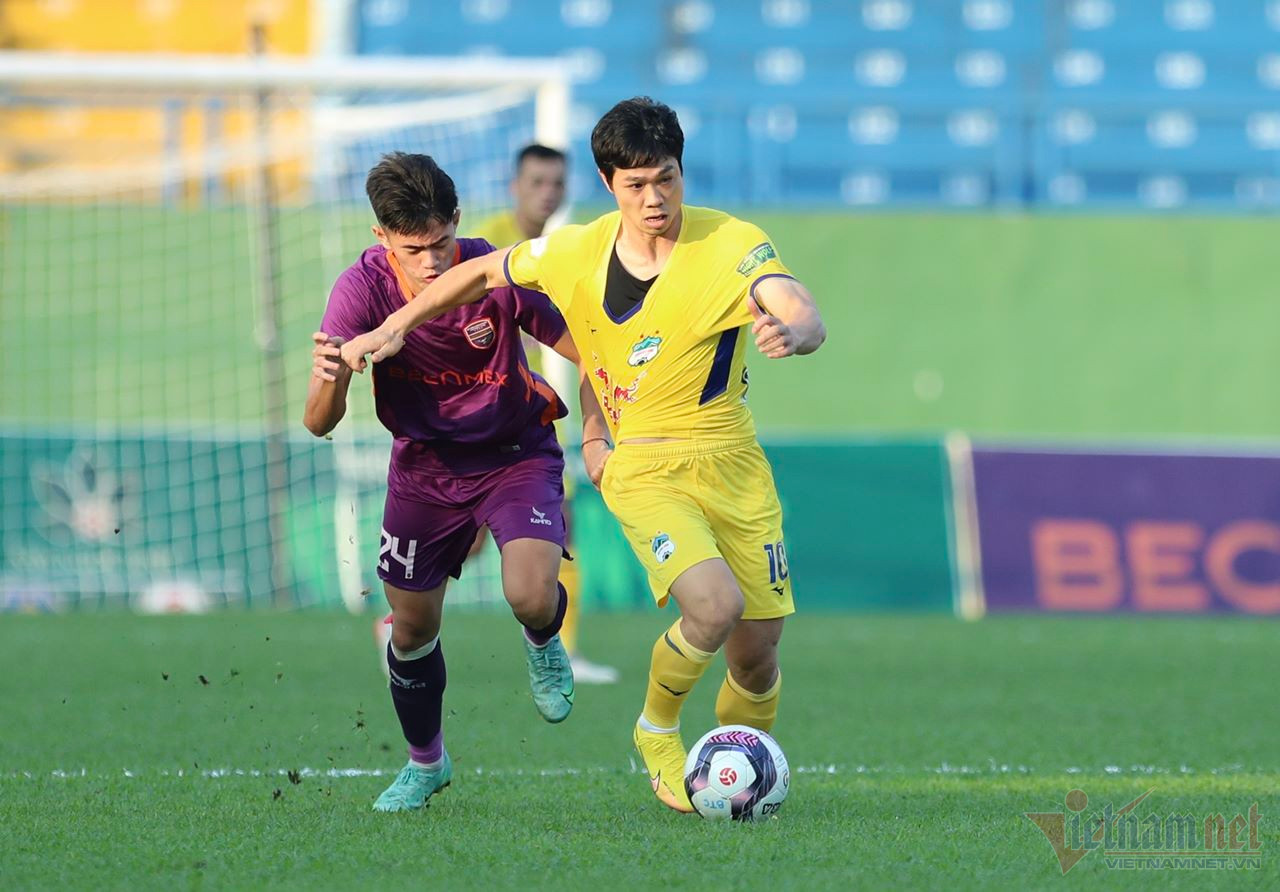 Công Phượng đang thi đấu rất nỗ lực, anh liên tục có những pha đi bóng kỹ thuật vượt qua các cầu thủ Bình Dương.