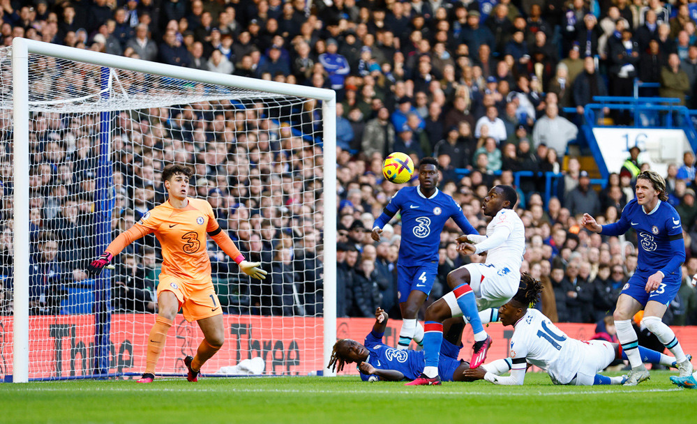 Michael Olise bất ngờ nã đại bác sấm sét ngoài vòng cấm. May cho Chelsea là Kepa tiếp tục tung người cứu thua ngoạn mục.