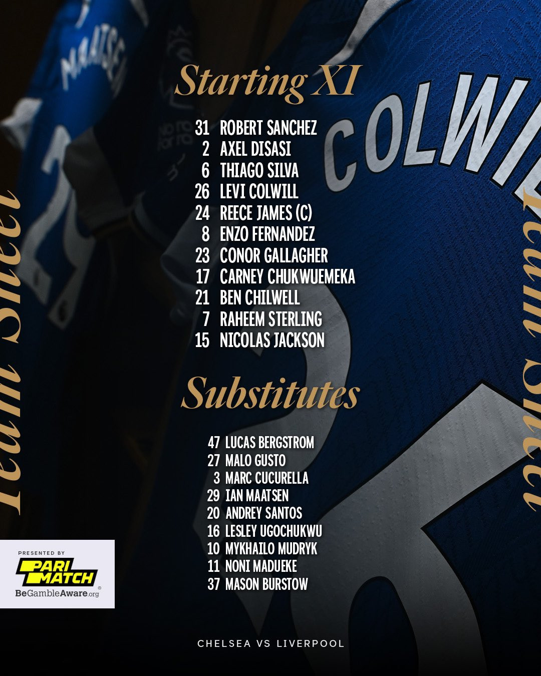 Chelsea: Sanchez; James, Silva, Colwill, Chilwell, Disasi; Fernandez, Gallagher; Sterling, Chukwuemeka, Jackson.