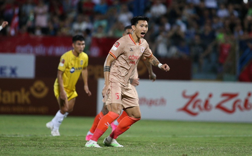 Trọng tài cho CAHN được phép lợi thế, Đoàn Văn Hậu dứt điểm bằng chân phải, không thuận đưa bóng đi không trúng đích.