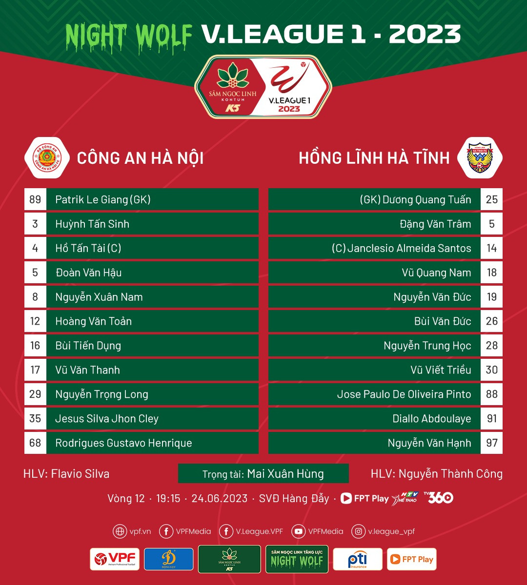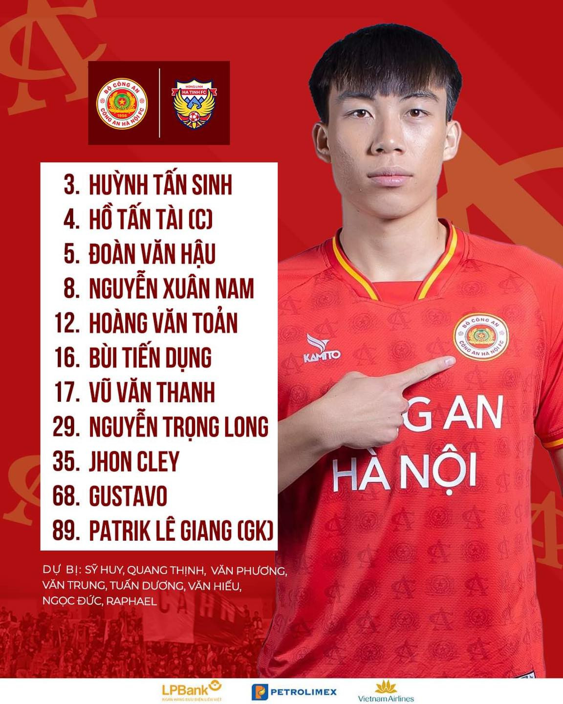 Đội hình xuất phát Công an Hà Nội vs Hà Tĩnh