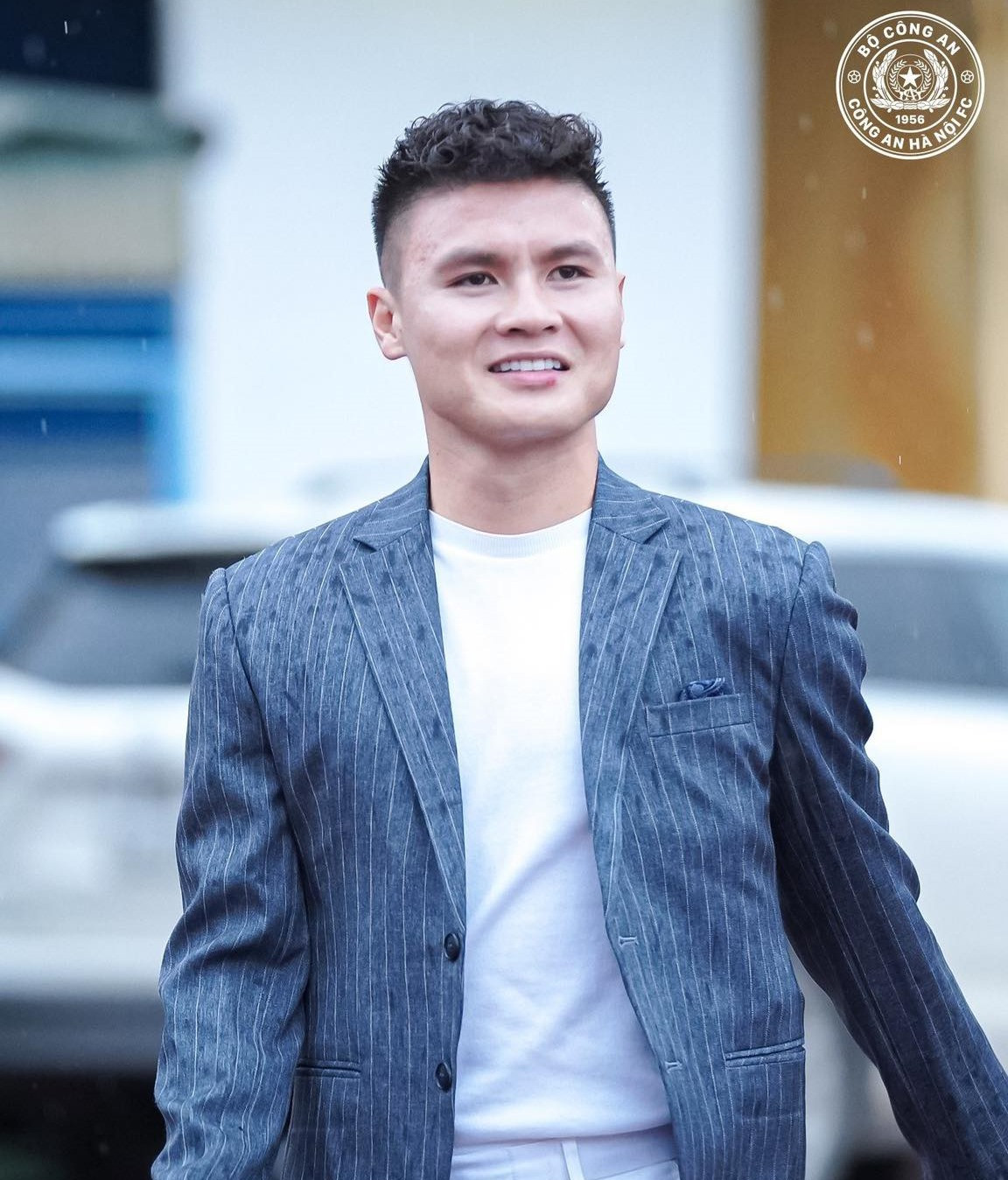 Quang Hải mặc vest lịch lãm đến sân Hàng Đẫy