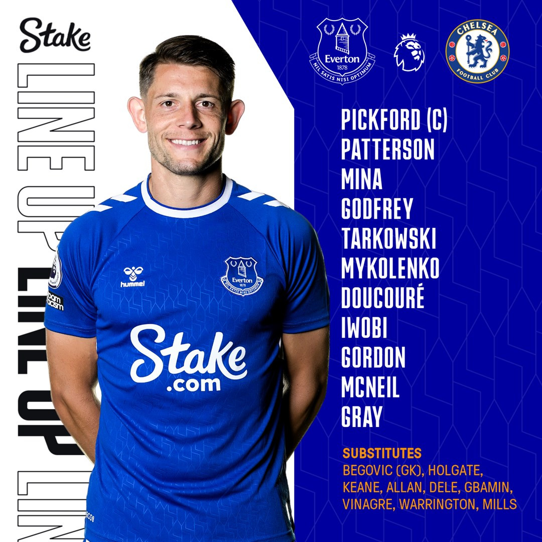Everton: Pickford; Godfrey, Mina, Tarkowski; Patterson, Doucoure, Iwobi, Mykolenko; Gordon, Gray, McNeil.