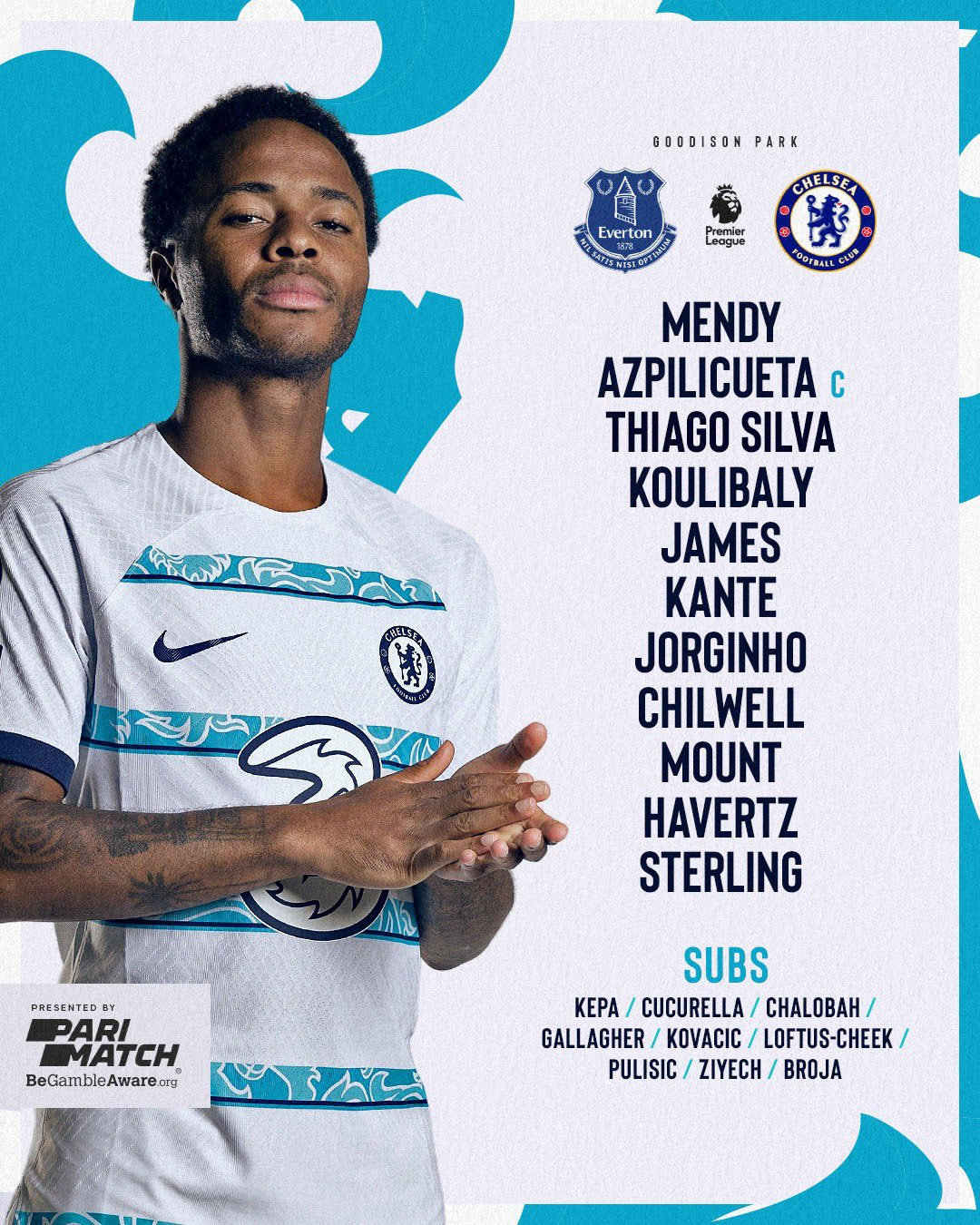 Chelsea: Mendy; Azpilicueta, T Silva, Koulibaly; James, Kante, Jorginho, Chilwell; Mount, Havertz, Sterling.