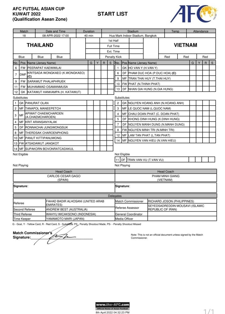 Lần cuối cùng mà Thái Lan phải nhận 1 thất bại đã diễn ra cách đây 8 năm. Và đội cuối cùng làm được điều này đó chính là Việt Nam khi chúng ta thắng họ 2-0 ở vòng bảng năm 2014. Trọng Luân và Quốc Nam là 2 cái tên ghi bàn cho futsal Việt Nam trong trận đấu đó.