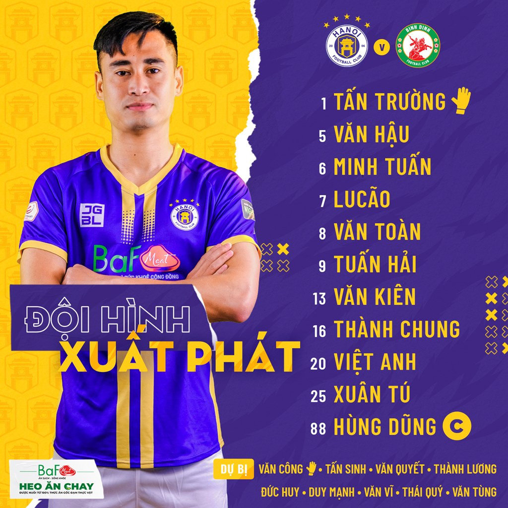 Đội hình xuất phát Hà Nội vs Bình Định