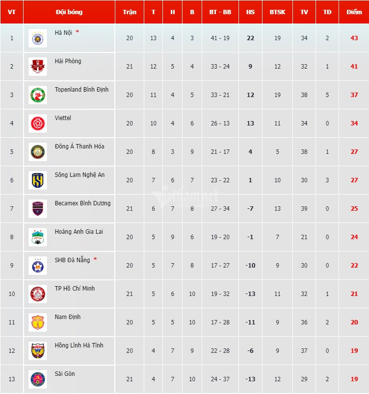 Trận đấu kết thúc với chiến thắng 3-0 dành cho Hà Nội trước Đà Nẵng. Kết quả này giúp đội bóng Thủ đô đòi lại ngôi đầu bảng từ tay Hải Phòng, với 2 điểm nhiều hơn và vẫn thi đấu ít hơn đối thủ một trận.