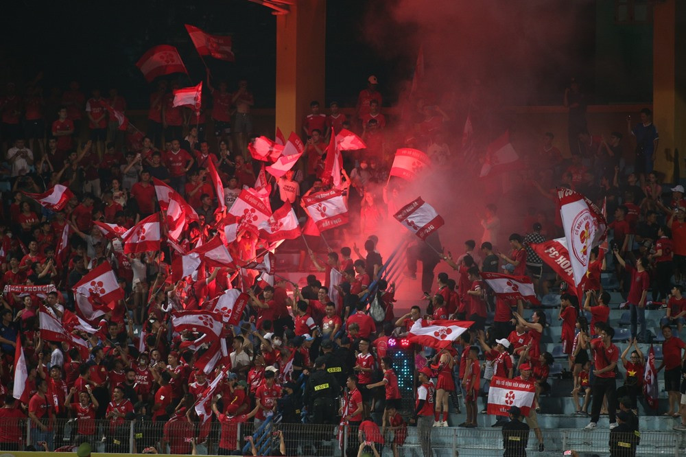 CĐV Hải Phòng đốt pháo sáng ngay trước trận đấu