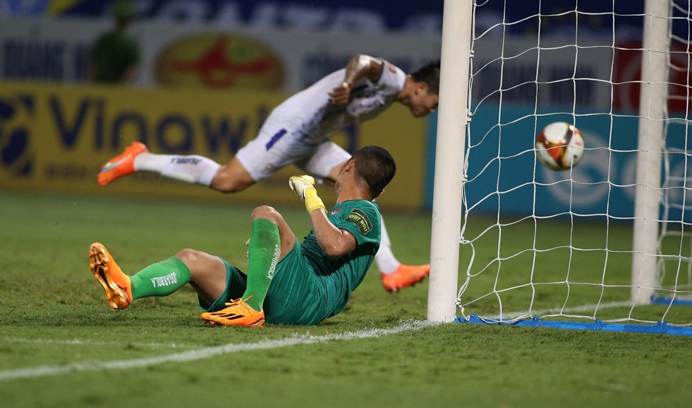 Pha uy hiếp khung thành đối phương của Hà Nội FC, tuy nhiên pha xử ký của Văn Quyết không thành bàn.