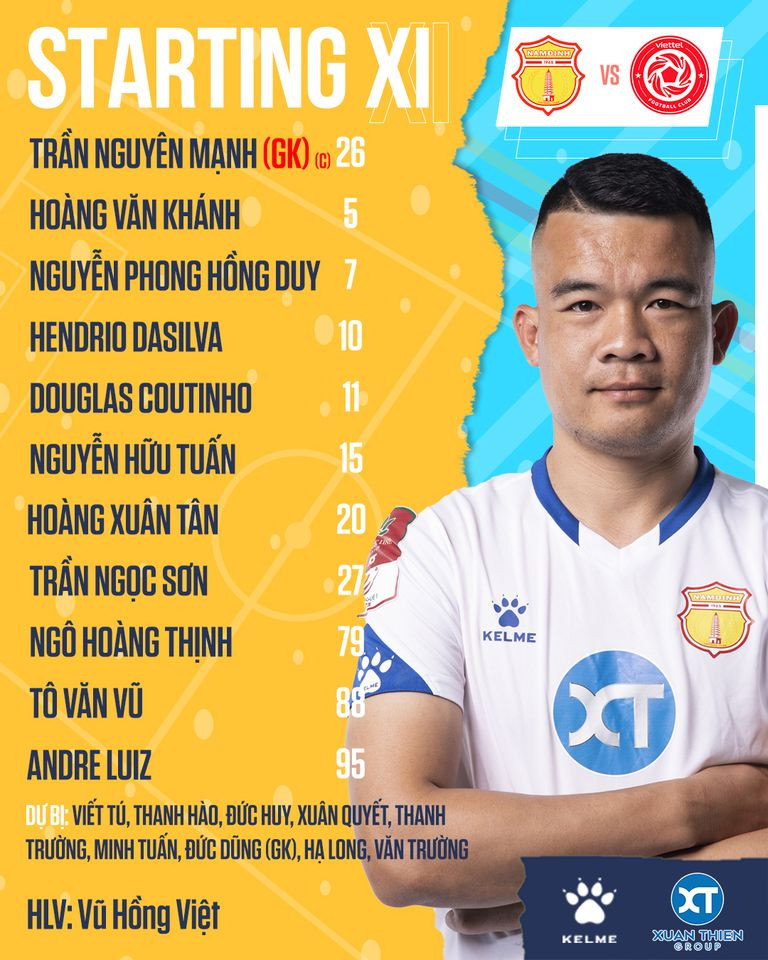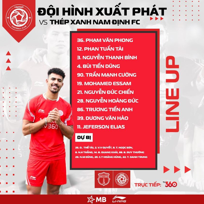 Đội hình xuất phát trận Nam Định vs Viettel: