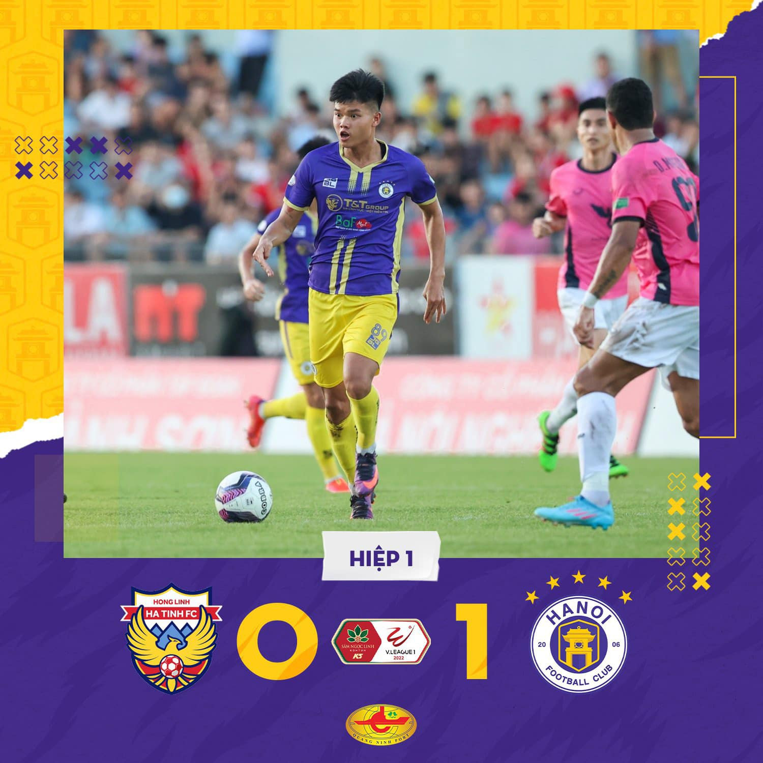 Đội trưởng Văn Quyết dẫn bóng đến gần vòng cấm Hà Tĩnh rồi tung cú sút căng và hiểm hóc đánh bại thủ môn Quang Tuấn, mở tỷ số cho Hà Nội.