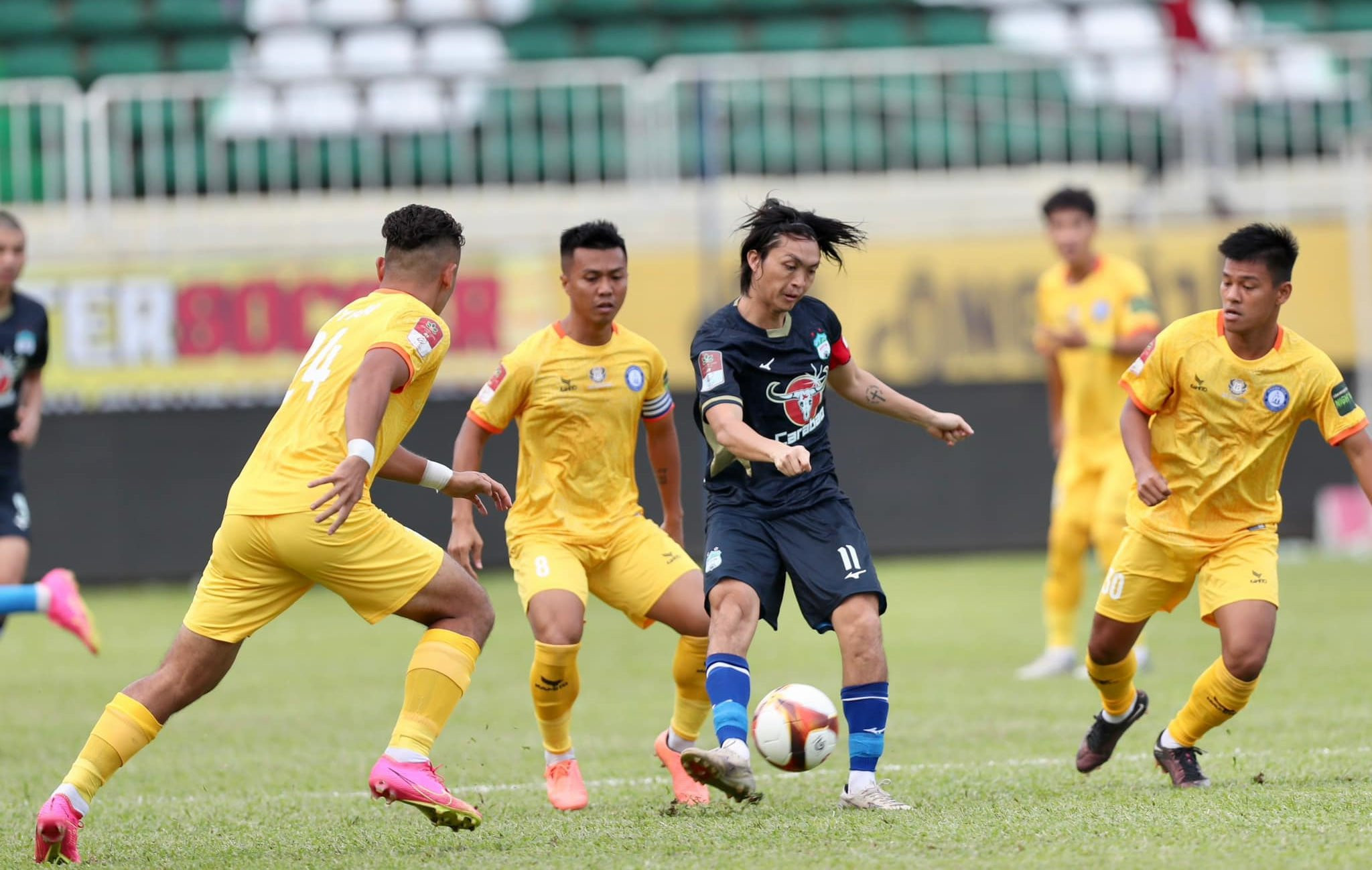 Đội bóng phố núi vẫn hoàn toàn bế tắc trong việc tìm đường vào khung thành của Khánh Hòa.