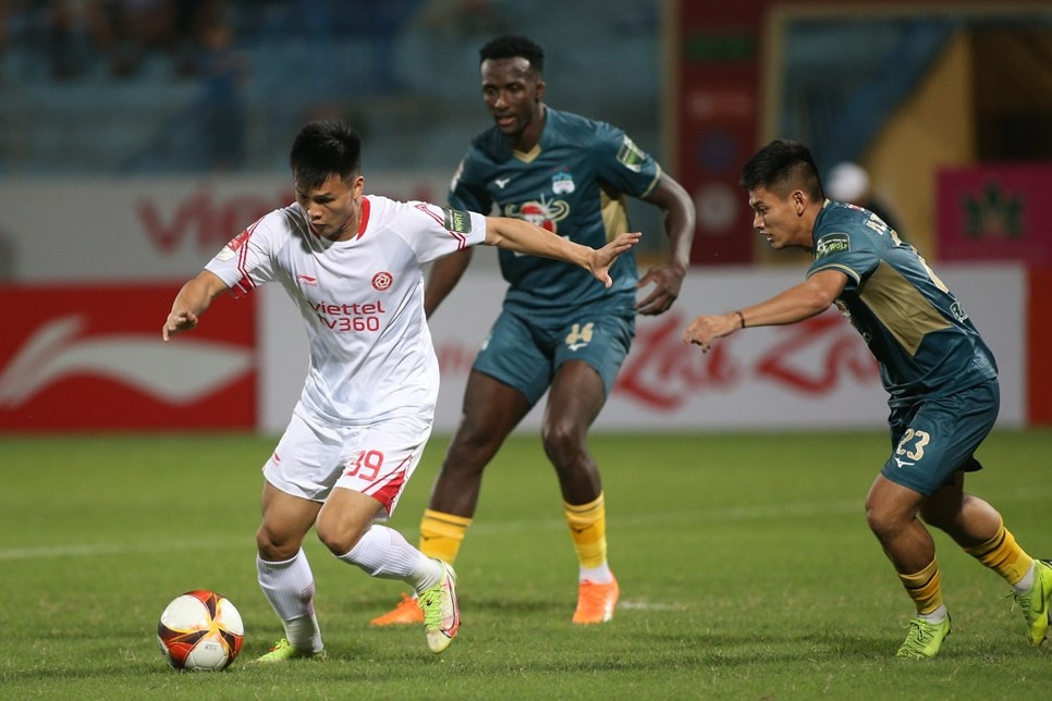 Lối chơi pressing tầm cao của các cầu thủ Thể Công Viettel gây ra không ít khó khăn cho HAGL trong những phút đầu hiệp hai.