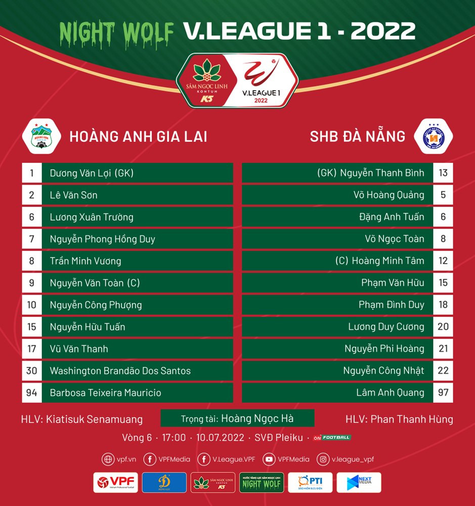 HLV Kiatisuk cất giữ Tuấn Anh trên băng ghế dự bị, cặp tiện về trung tâm của HAGL ở trận tiếp đón SHB Đà Nẵng là Xuân Trường - Minh Vương. Băng đội trưởng ở trận đấu này được nhà cầm quân người Thái Lan trao cho tiền đạo Văn Toàn.