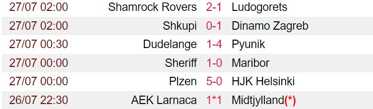 Kết quả vòng sơ loại UEFA Champions League: