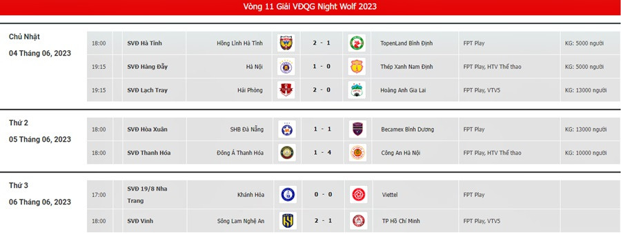 Lịch thi đấu vòng 12 V-League 2023 mới nhất
