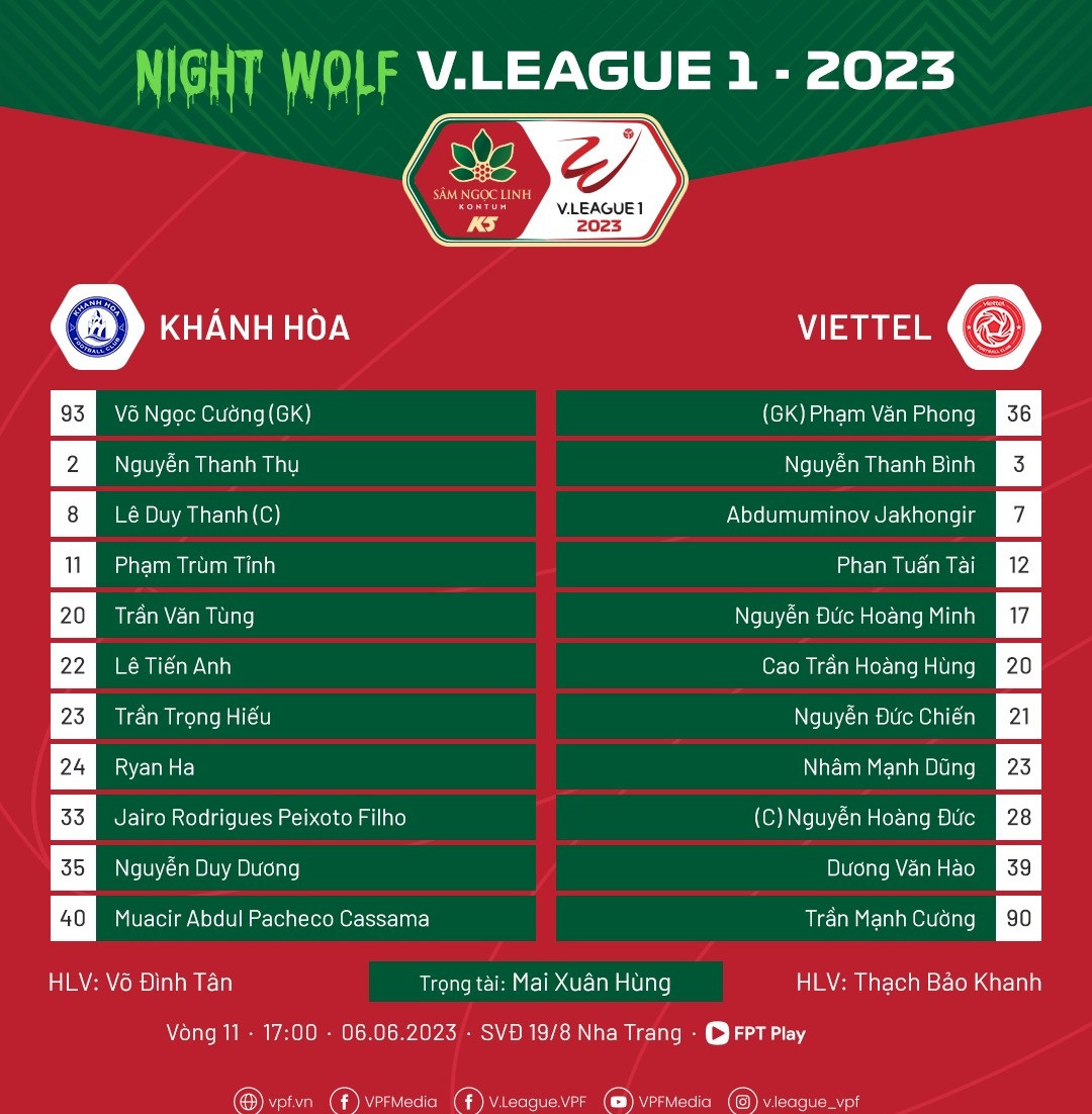 Đội hình xuất phát Khánh Hòa vs Viettel
