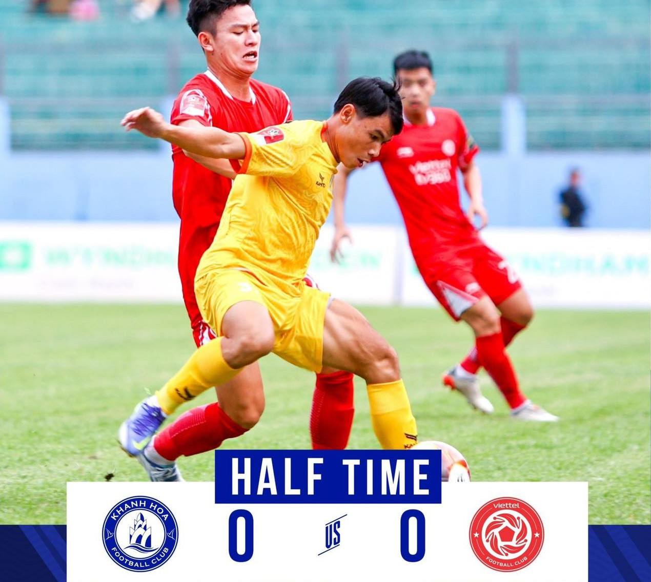 Ngay sau khi Jaha sút phạt đưa bóng đập hàng rào Khánh Hòa rồi đi hết đường biên ngang, Viettel đá phạt để Đức Chiến đánh đầu đưa bóng đi sát khung thành.