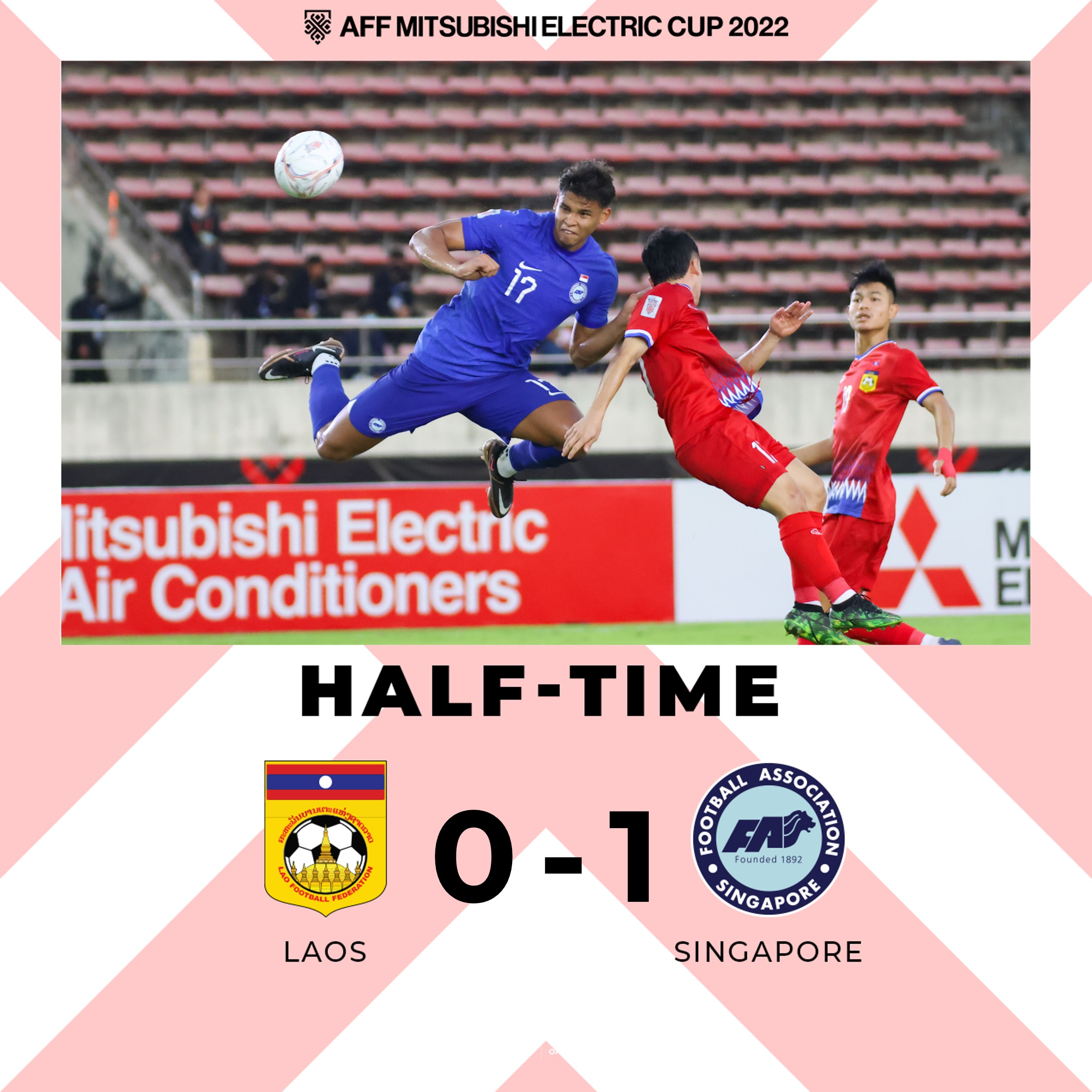 Bàn thắng (0-1, Irfan Fandi): Zulfahmi đá phạt từ bên cánh trái vào cho Irfan Fandi bật cao đánh đầu tung lưới tuyển Lào.