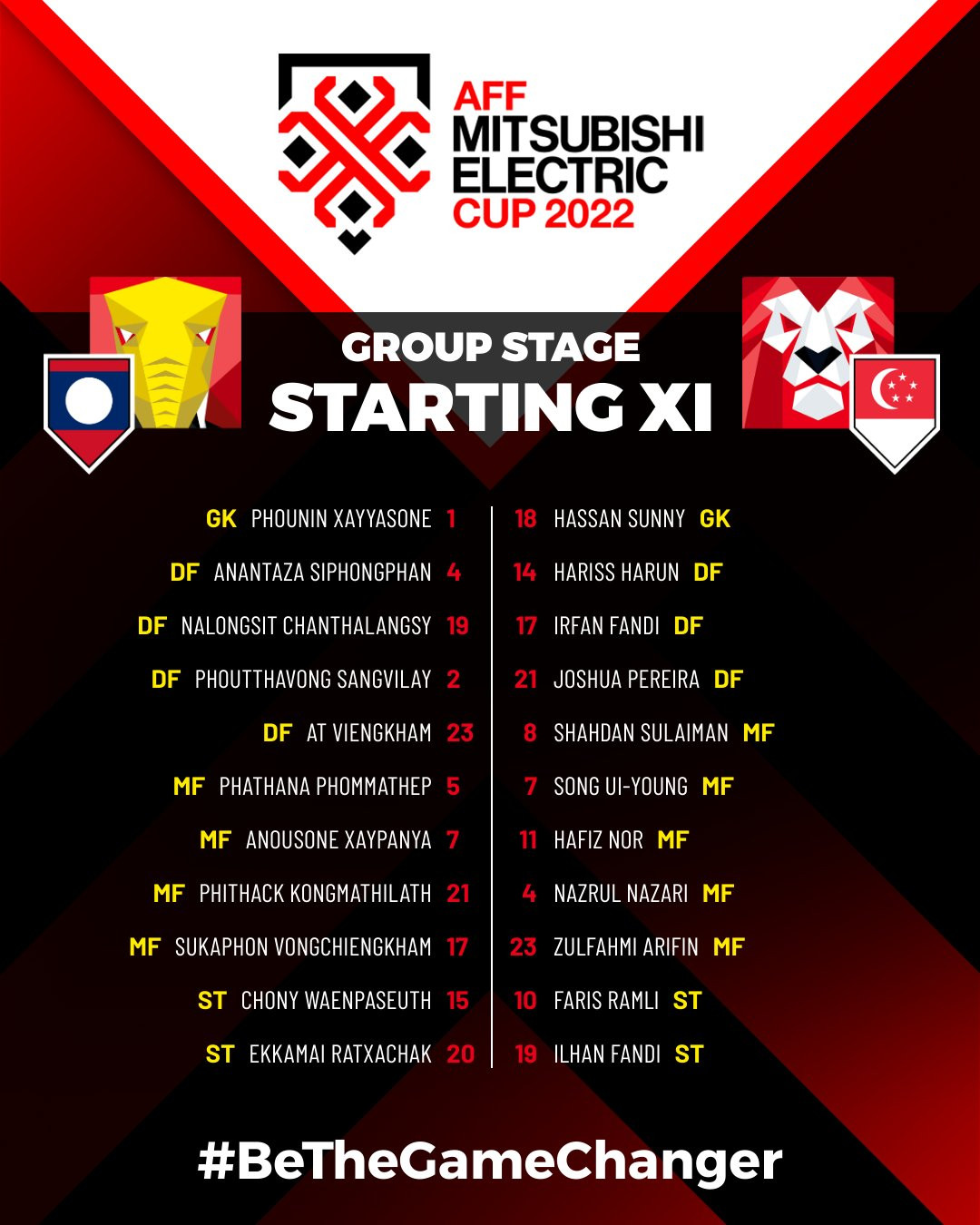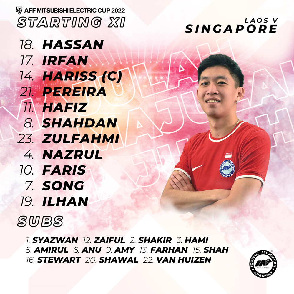 Singapore: Hassan, Harun, Pereira, Irfan, Hafiz, Shahdan, Zulfahmi, Nazrul, Faris, Song, Ilhan Fandi.