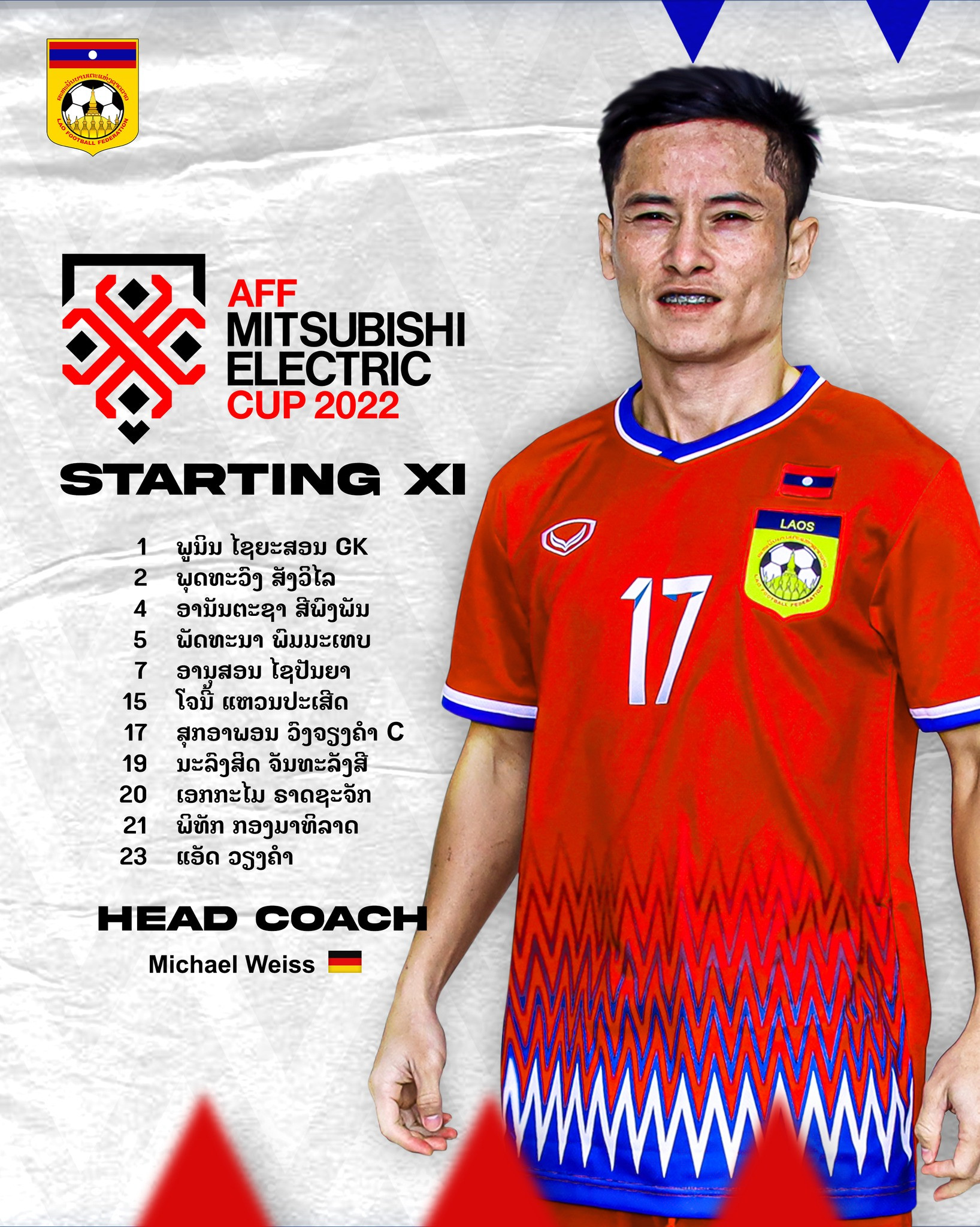 Lào: Xayyasone, Siphongphan, Nalongsit, Sangvilay, Viengkham, Chony, Vongchiengkham, Phommathep, Xaypanya, Kongmathilath, Ekkamai.