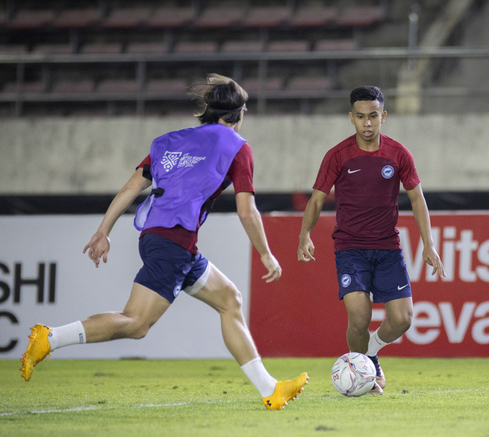 Singapore rút các trụ cột như Ilhan Fandi hay Faris ra nghỉ dưỡng sức. Trên sân, hai đội đang thi đấu đôi công.