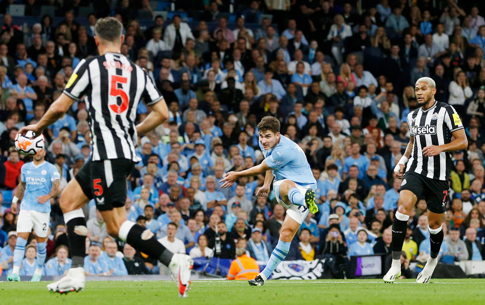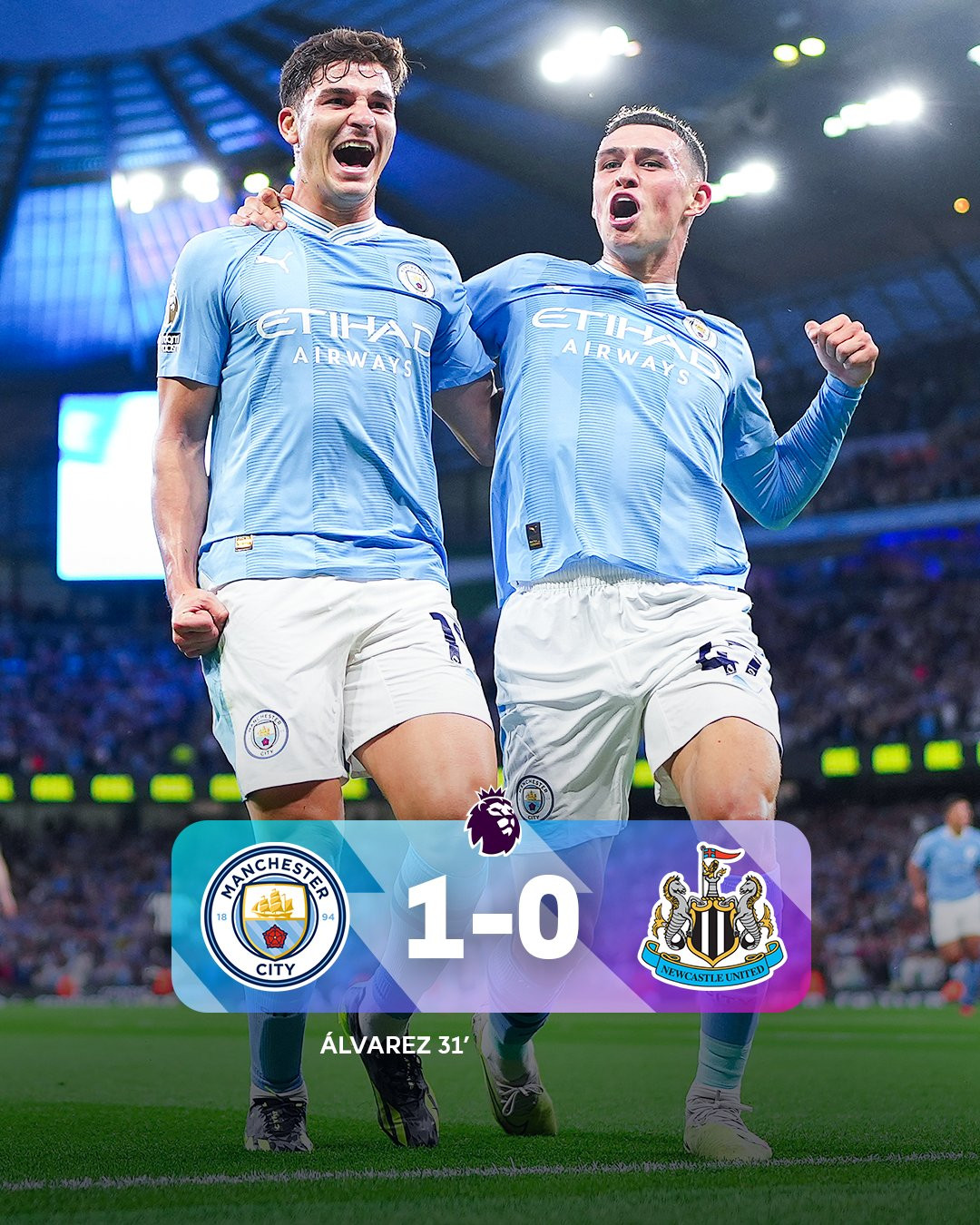 Bàn thắng (1-0, Julian Alvarez): Đón đường chuyền của Foden, Alvarez trong tư thế thoải mái vung chân căng hiểm hóc mở tỷ số cho Man City.