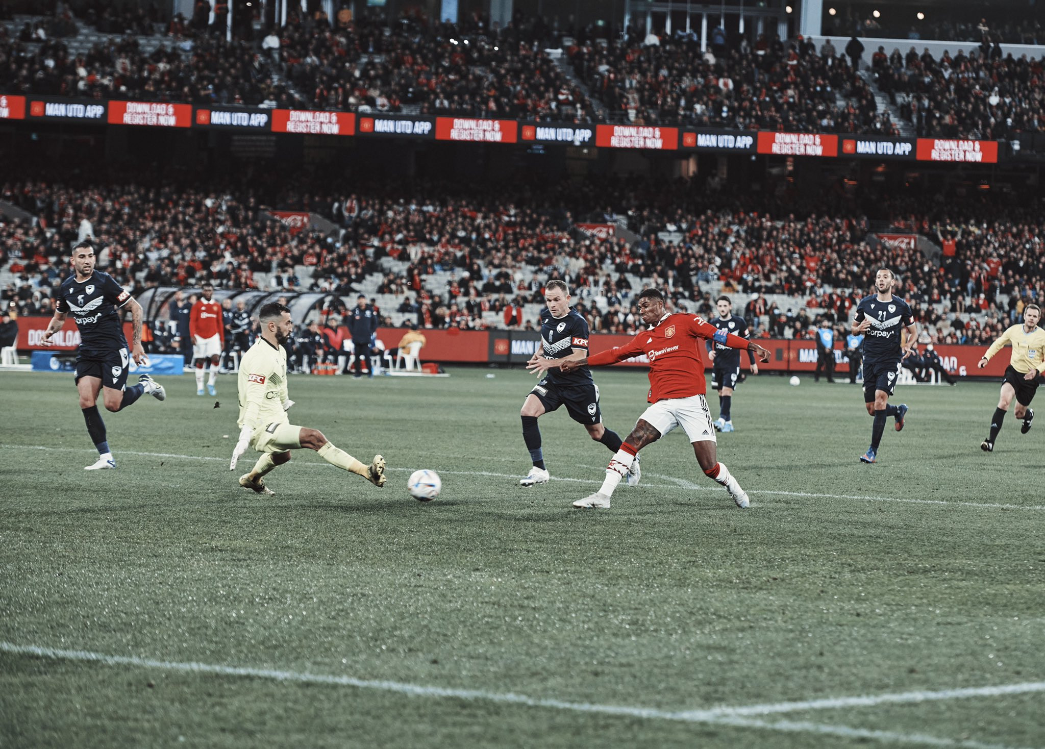 MU đang thi đấu áp đảo nhưng gặp nhiều khó khăn trước Melbourne Victory phòng ngự nhiều lớp bên phần sân nhà.