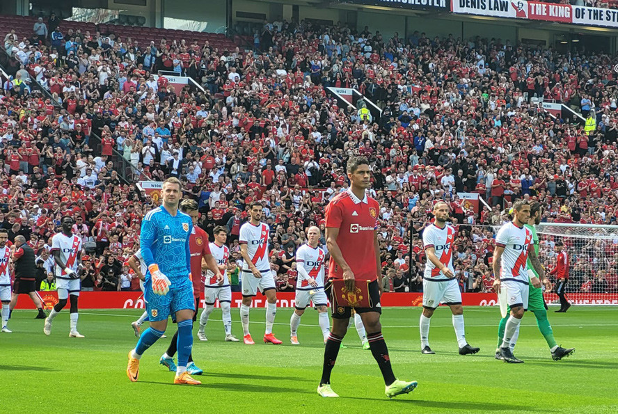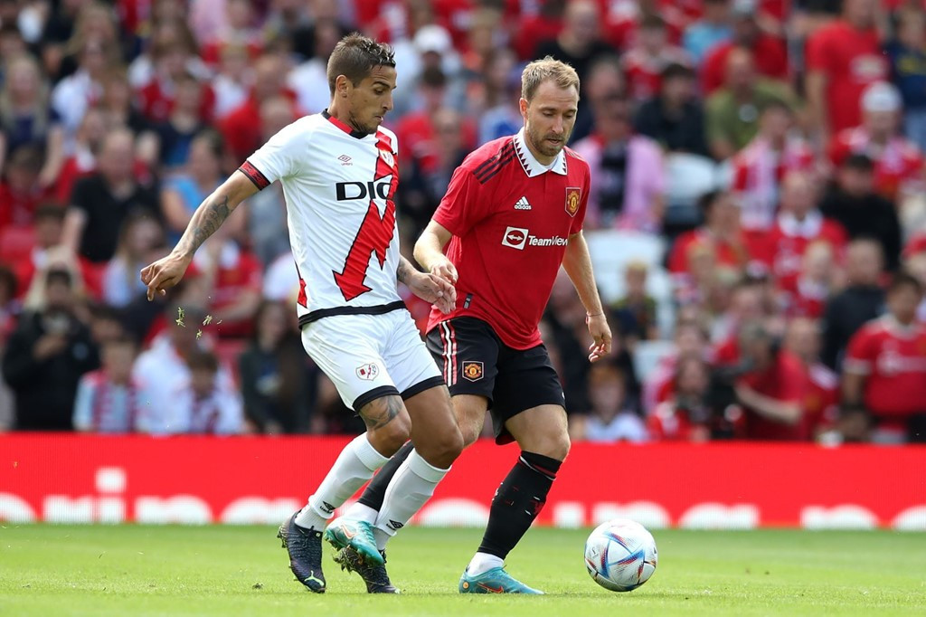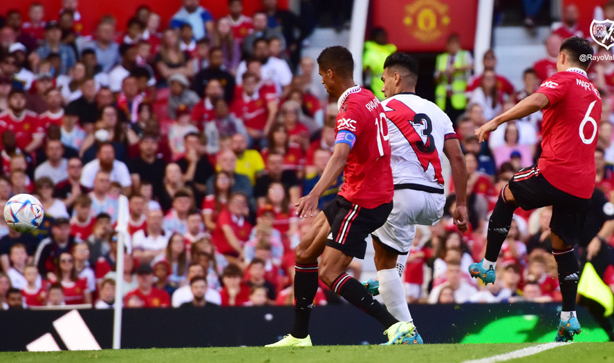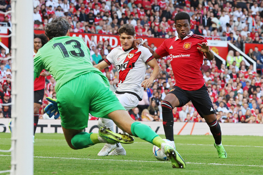 Amad Diallo cướp được bóng và bị hậu vệ Vallecano phạm lỗi ngay sát vòng cấm. Van de Beek thực hiện cú đá phạt không chính xác.