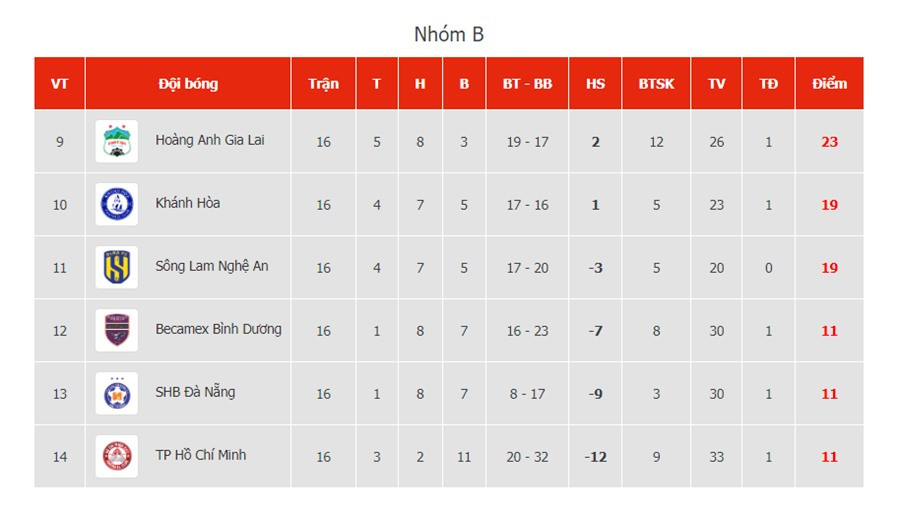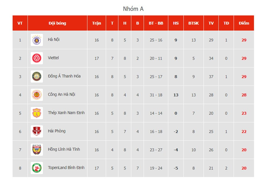 Bảng xếp hạng V-League 2023 vòng 4 giai đoạn 2 mới nhất