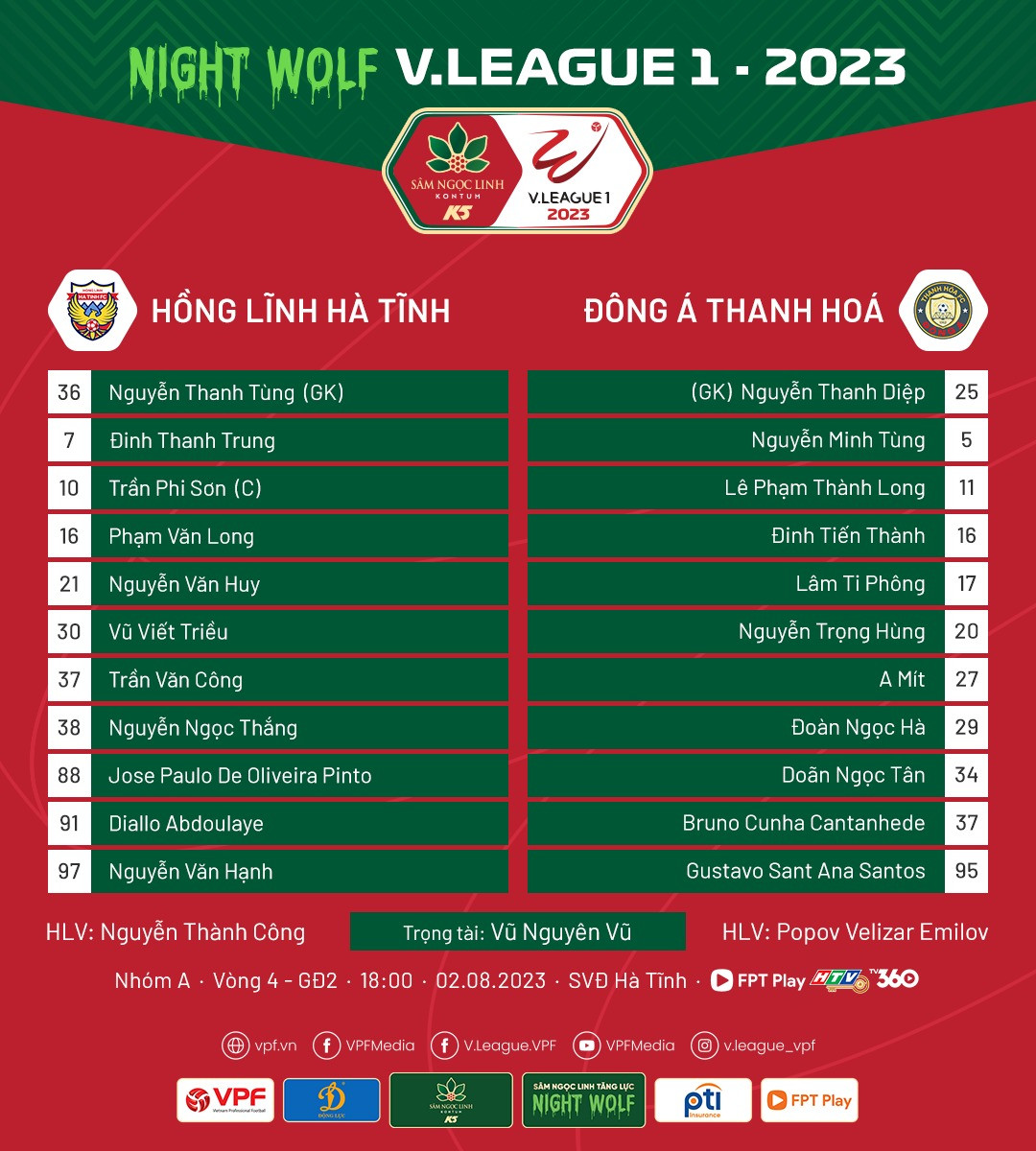 Đội hình xuất phát Hà Tĩnh vs Thanh Hóa