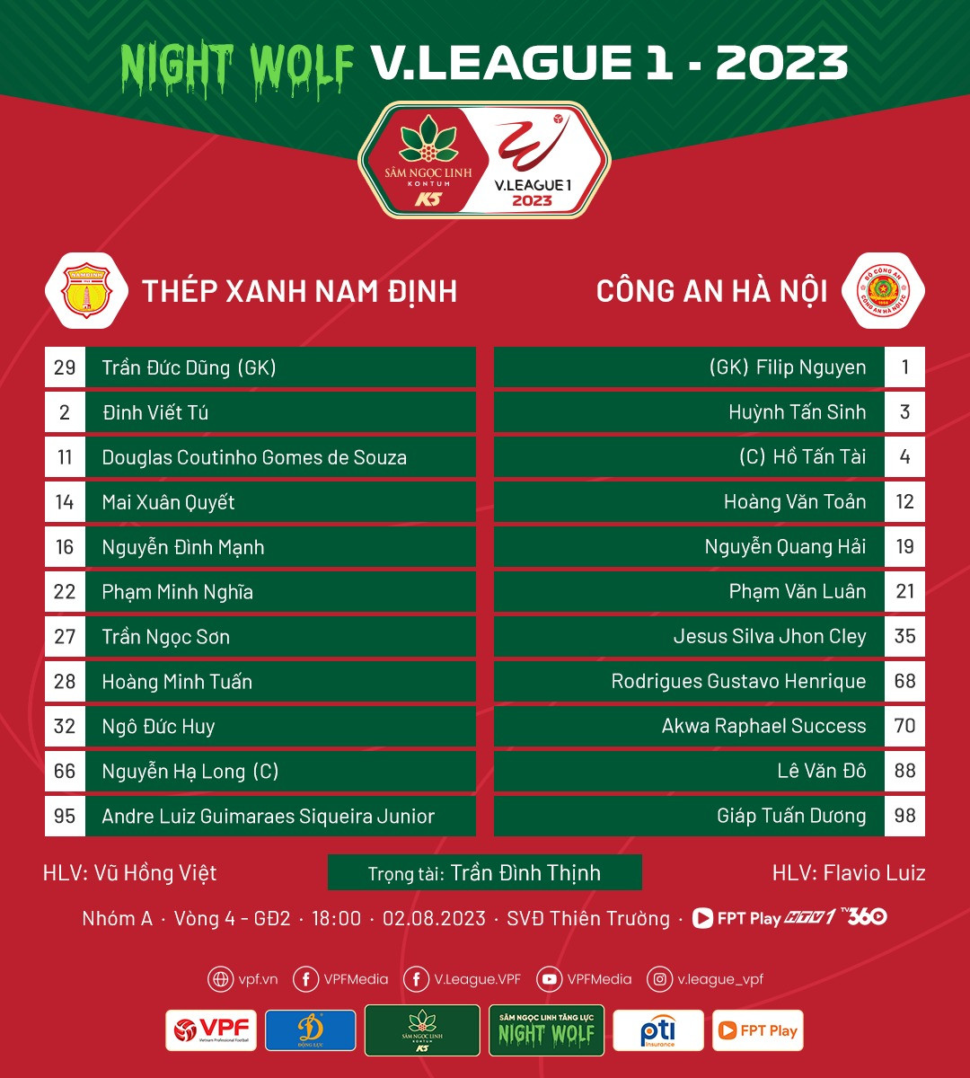 Đội hình xuất phát Nam Định vs Công an Hà Nội