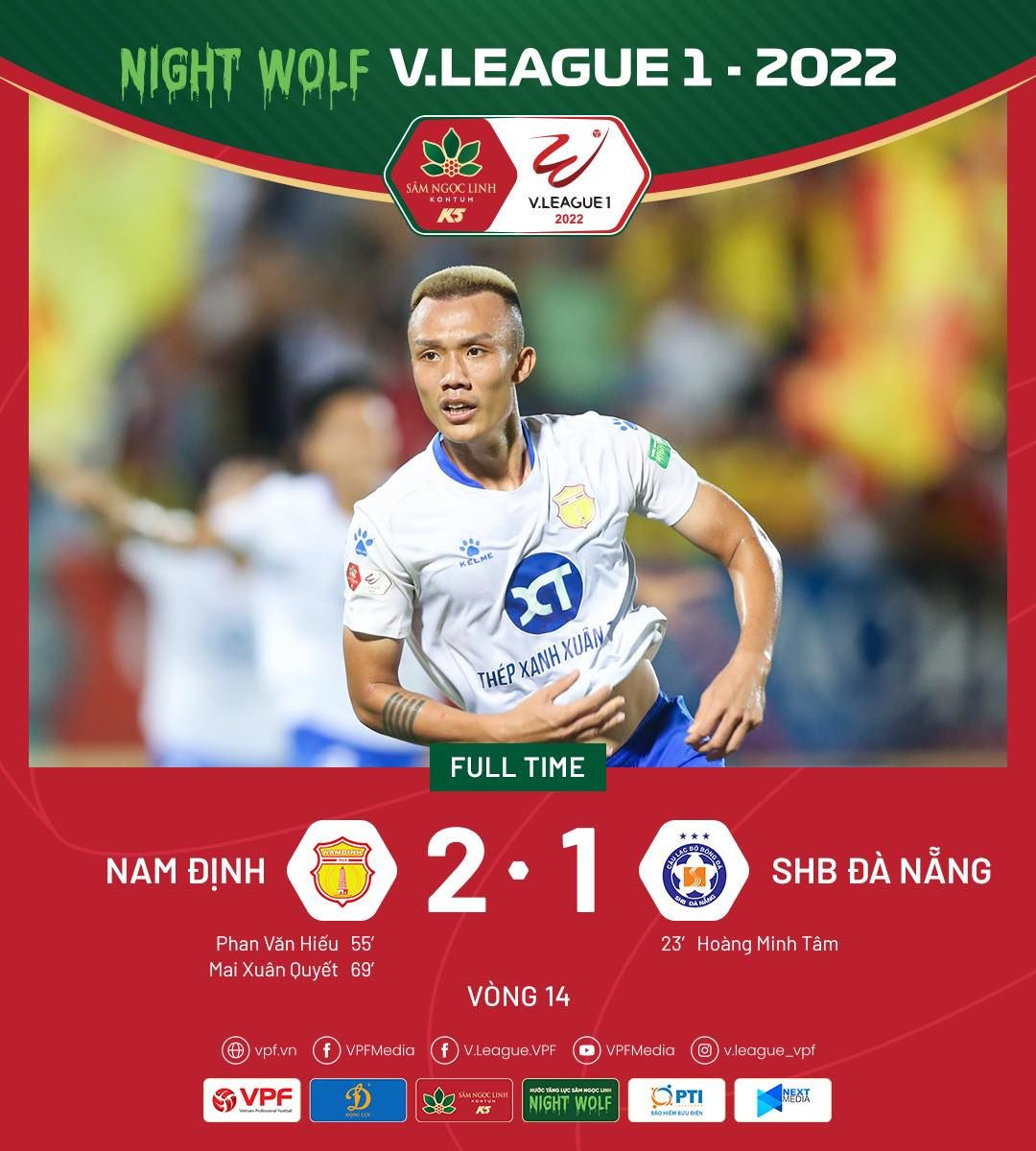 Trận đấu kết thúc với chiến thắng ngược dòng 2-1 dành cho chủ nhà Nam Định. Tân HLV Vũ Hồng Việt - trợ lý HLV Park Hang Seo có màn ra mắt như mơ tại sân Thiên Trường.