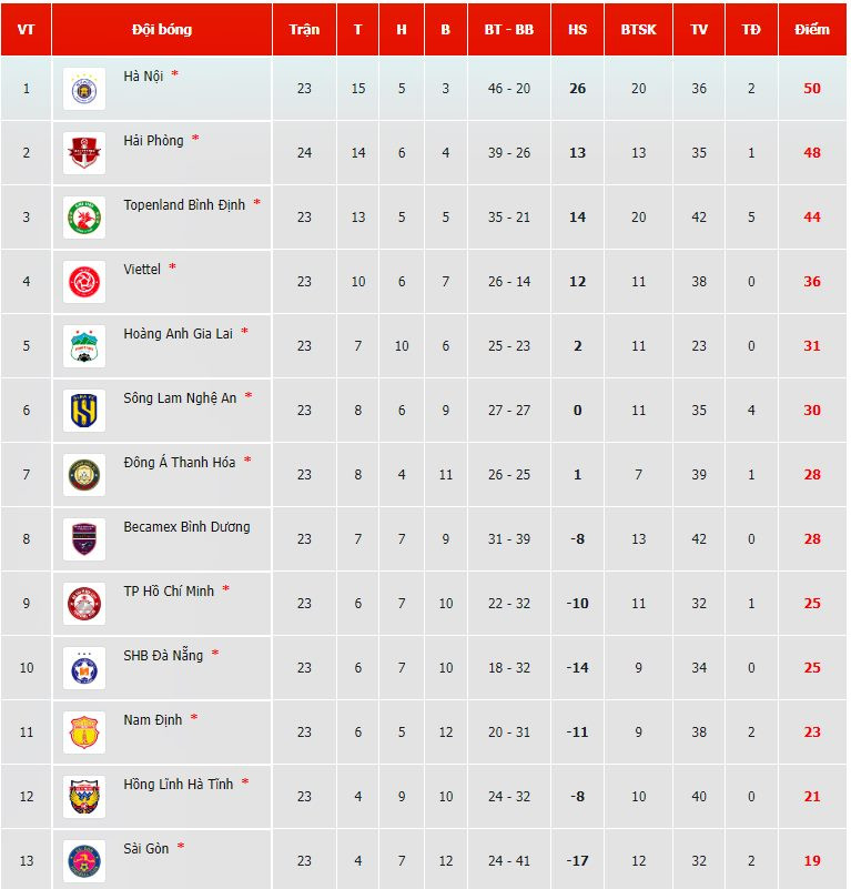 Ngược lại thì sẽ phải chờ tới kết quả trận cuối cùng mới phân định xong đội nào trong “tốp 3 từ dưới lên” tạm thời (bao gồm 2 đội trên và Hồng Lĩnh Hà Tĩnh) phải ngậm ngùi xuống V.League 2.