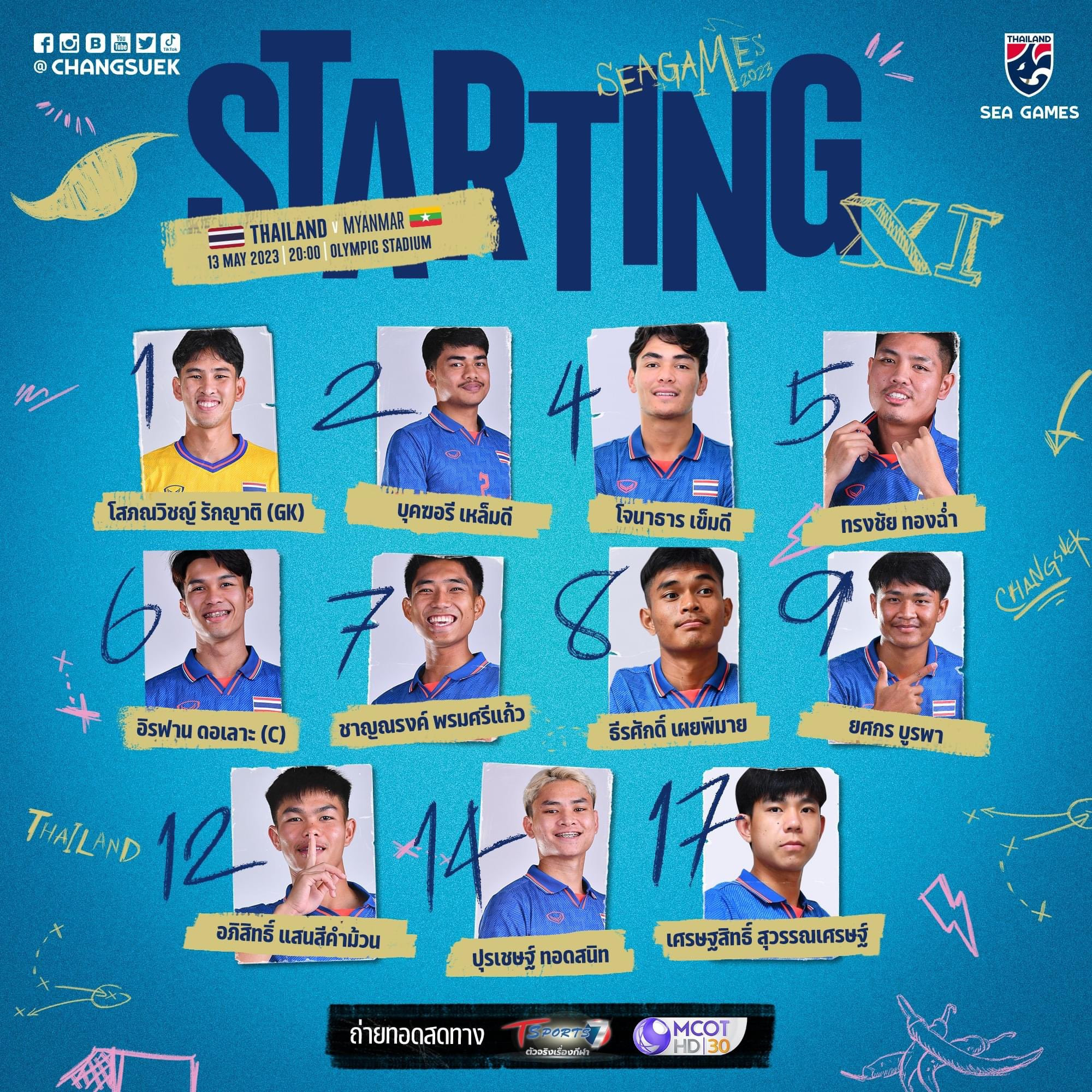 U22 Thái Lan: Sophonwit, Bukhari, Jonathan Khemdee, Songchai, Irfan Dolo, Channarong, Teerasak Peephimai, Yosakorn, Apisit, Purachet Thodsanit, Setthasit